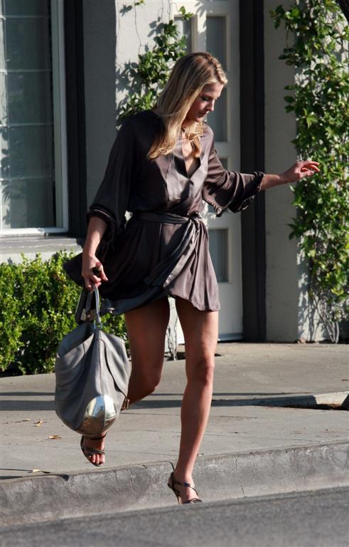 Quand Ali Larter, stripteaseuse de la série Heroes, décide de se balader dans la rue, c’est en mini robe, les jambes à l’air !