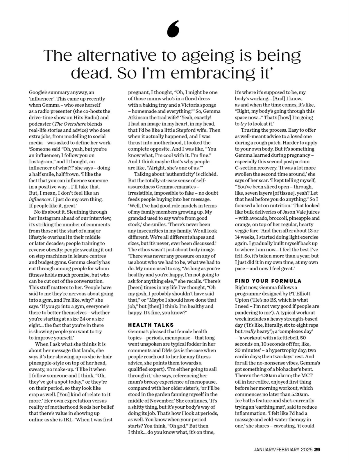 "Fit, Fierce and 40", c'est le cri de guerre qu'elle lance aux femmes du monde entier. Mais attention, Gemma n'est pas juste une cover girl. Elle prône un corps fonctionnel, pas juste pour le show, mais pour la vie de tous les jours.