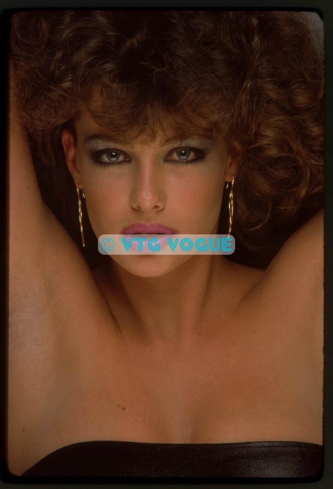 Dans la chaleur artificielle du studio, Kelly LeBrock joue la déesse des années paillettes : corset noir, cuisses gainées, moue vénéneuse. Sous l’objectif de Stan Malinowski, la soie devient prétexte, la pose une promesse de chute élégante. Le glamour des années 80 a trouvé sa prêtresse.
