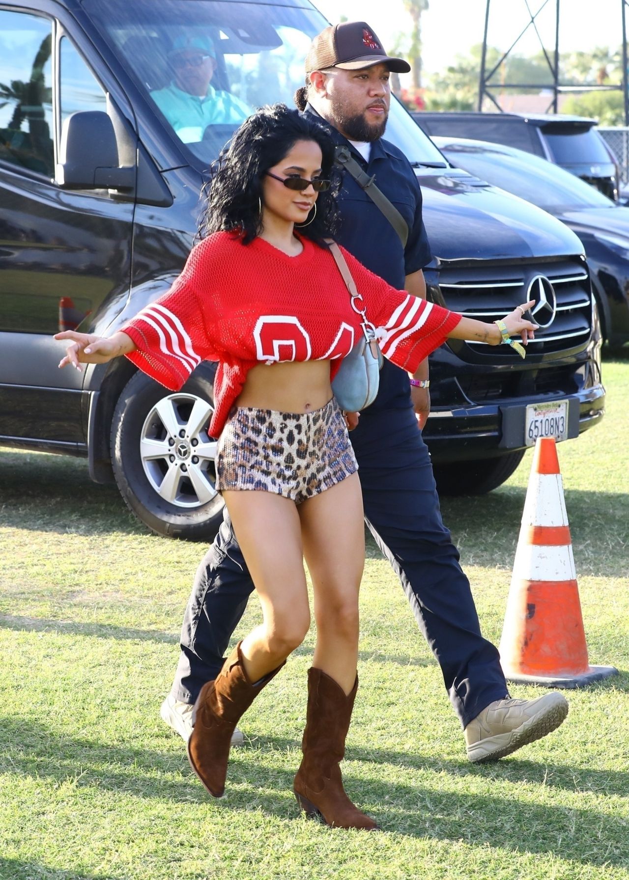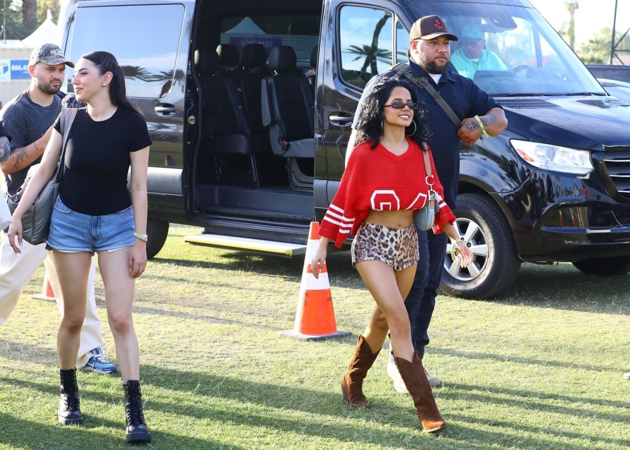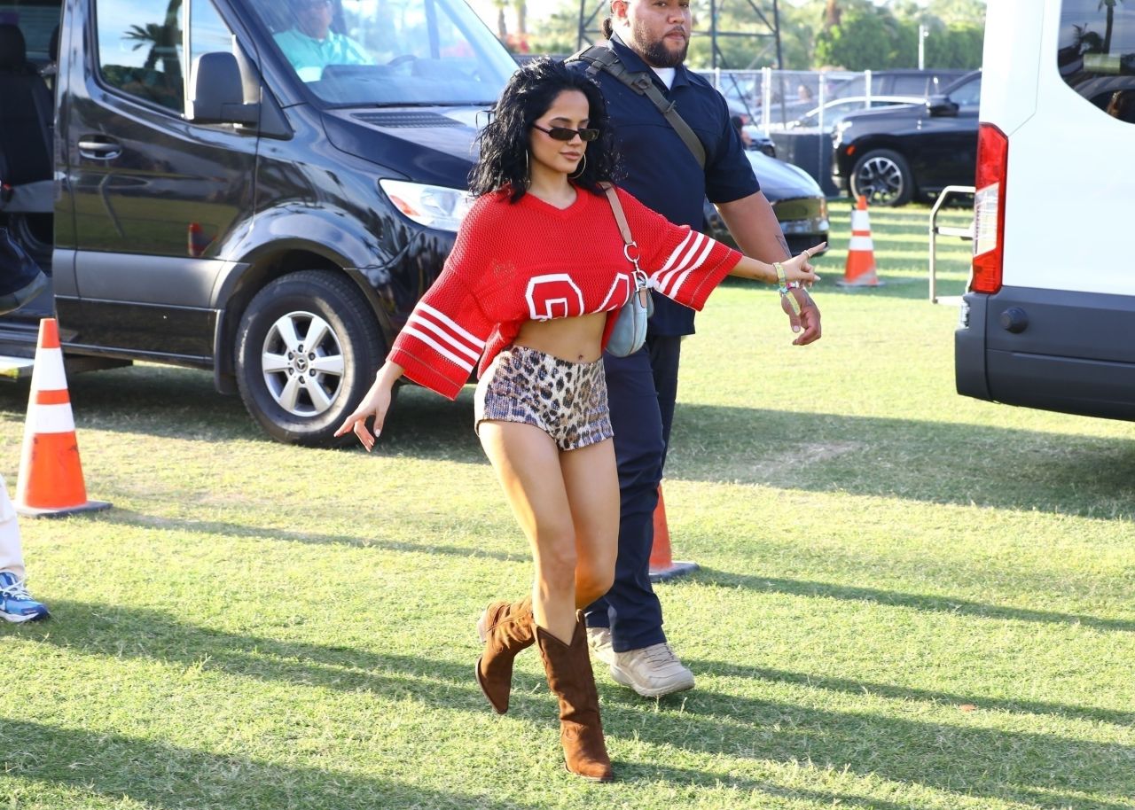 Ses bottes marron et son sac à main ajoutent une touche de cowgirl moderne, tandis qu’elle parade sur l’herbe comme une reine de festival. On dirait qu’elle a déjà conquis Indio avant même de monter sur scène !