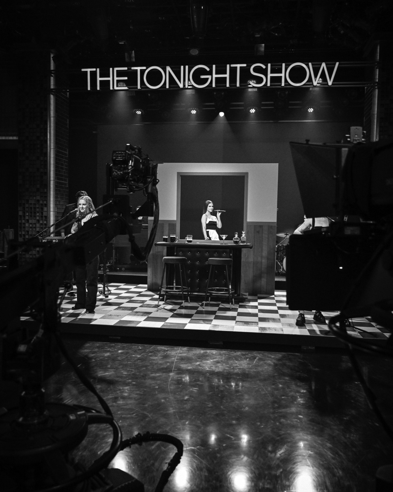 Franchement, entre sa robe de soubrette revisitée et son assurance de diva, on se demande si elle va chanter ou astiquer les meubles de Jimmy Fallon.