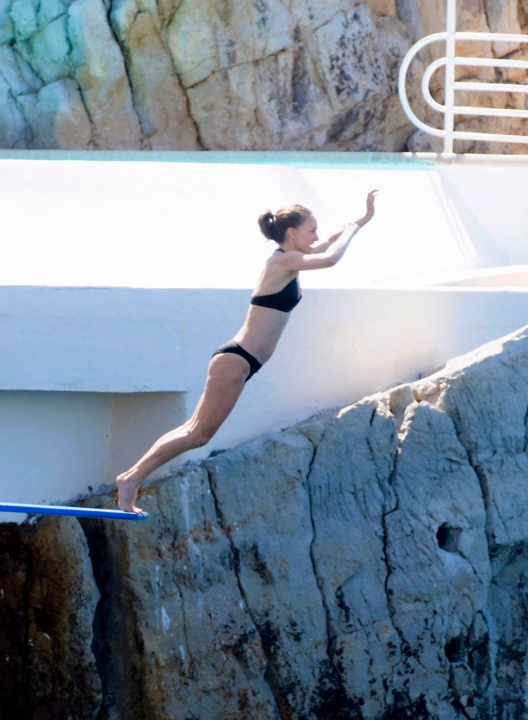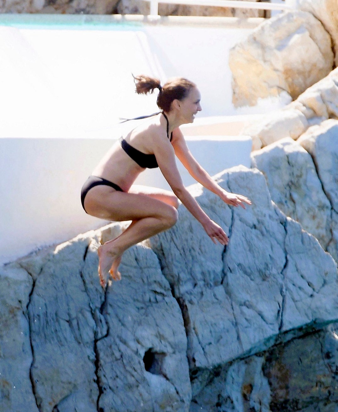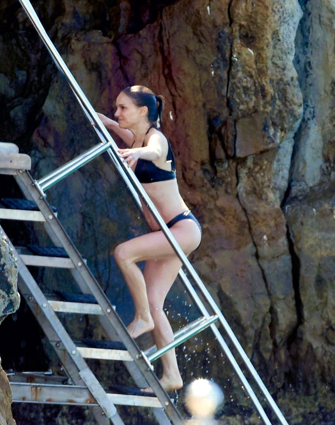 Natalie Portman à Cannes, en bikini noir, escaladant une échelle comme si elle auditionnait pour le prochain Mission Impossible !