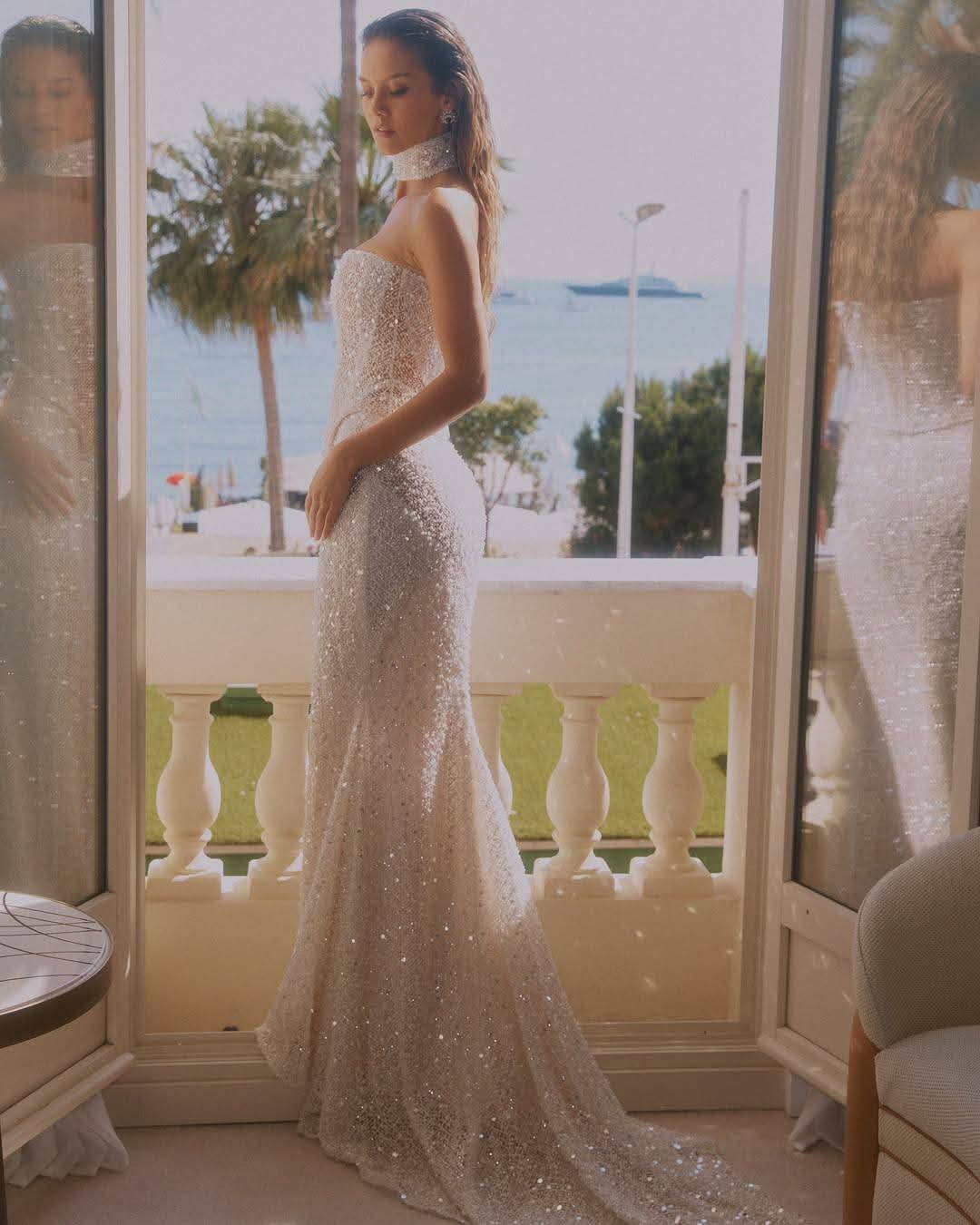 Les photographes s’affolent, et on l’imagine dire : "Tom Cruise, pousse-toi, c’est mon moment !" Sur un balcon face à la mer, elle semble prête à sauter… dans un shooting photo, bien sûr !
