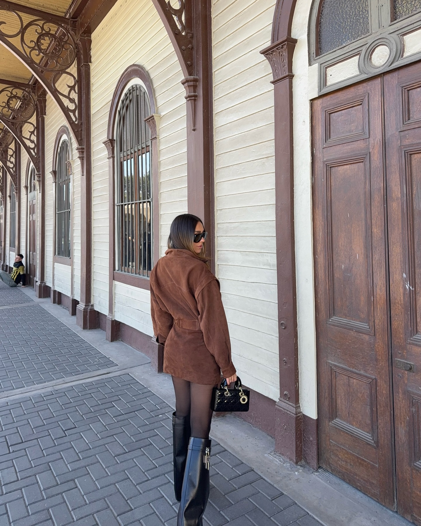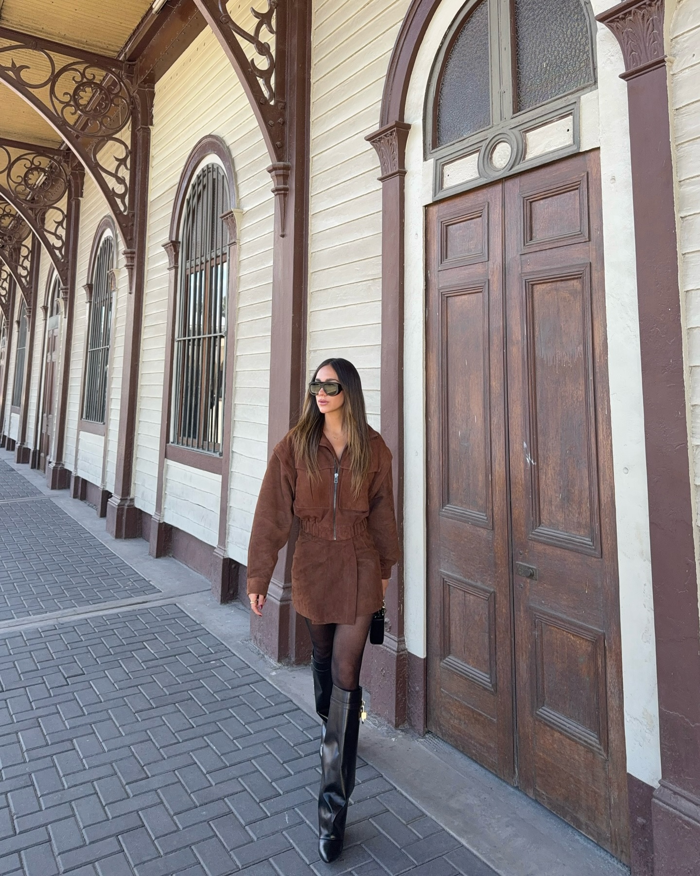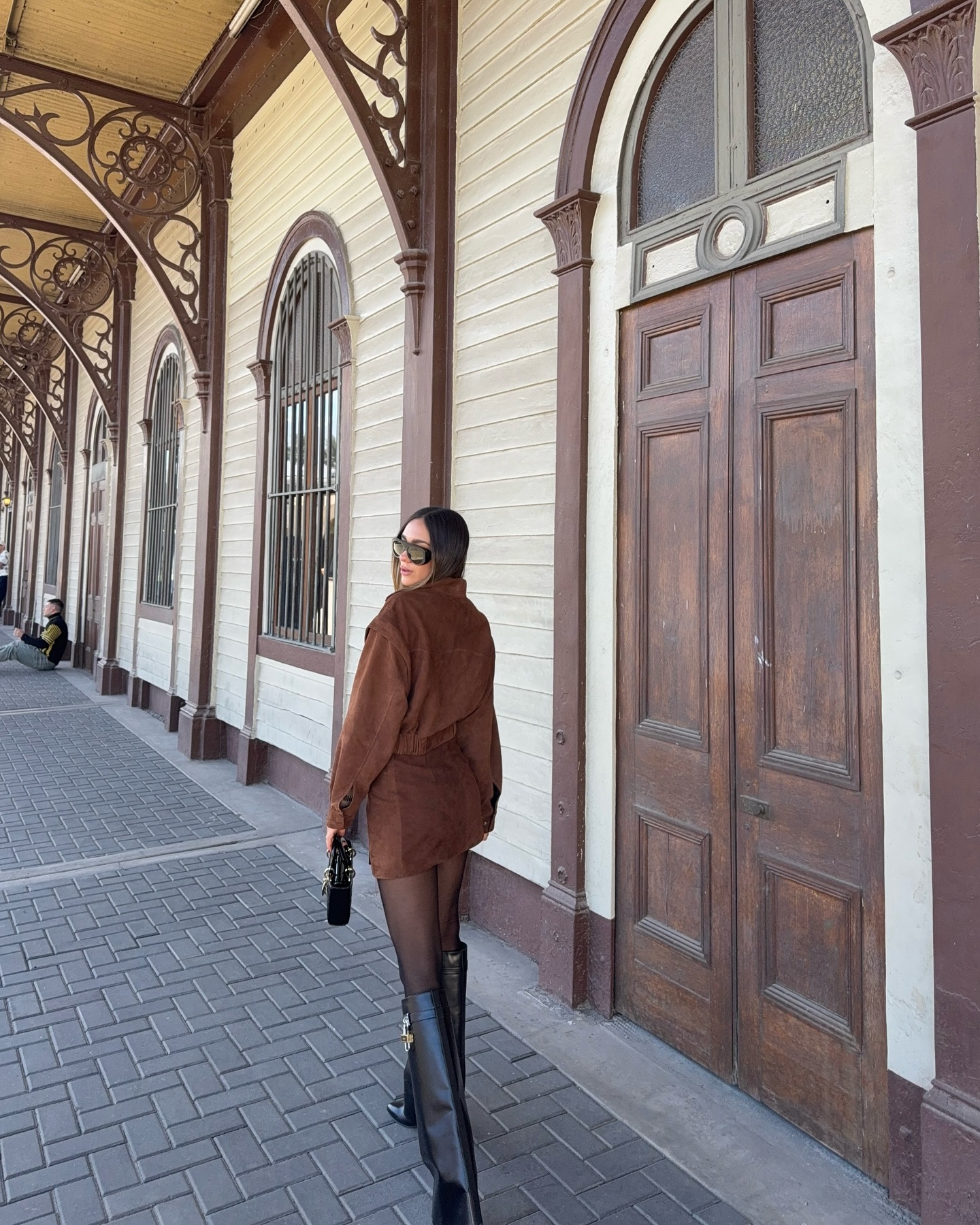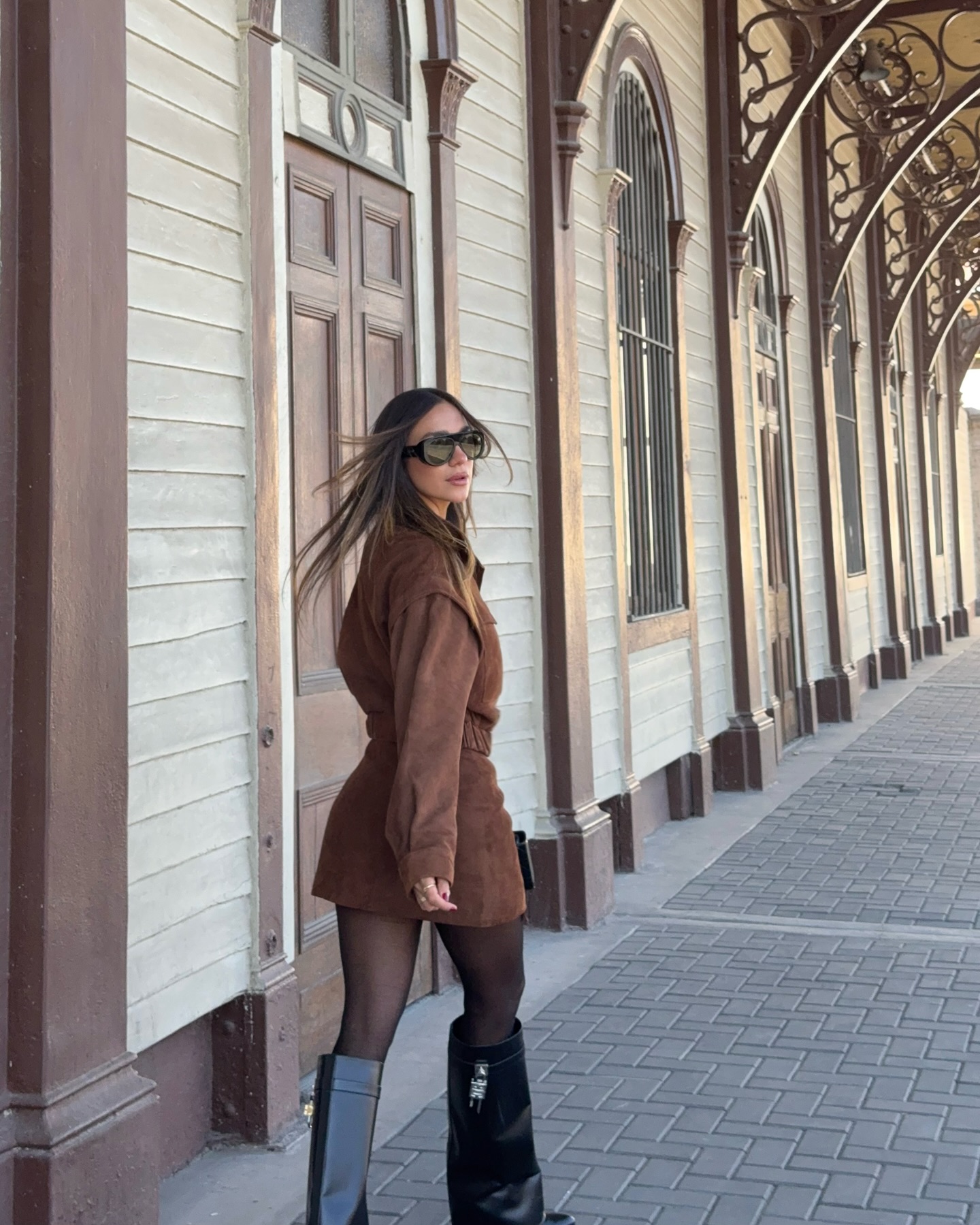 Avec sa tenue en cuir marron et son sac Dior, elle transforme le voyage en podium roulant. Entre ses lunettes de diva et son sourire mystérieux, elle éclipse les paysages andins !
