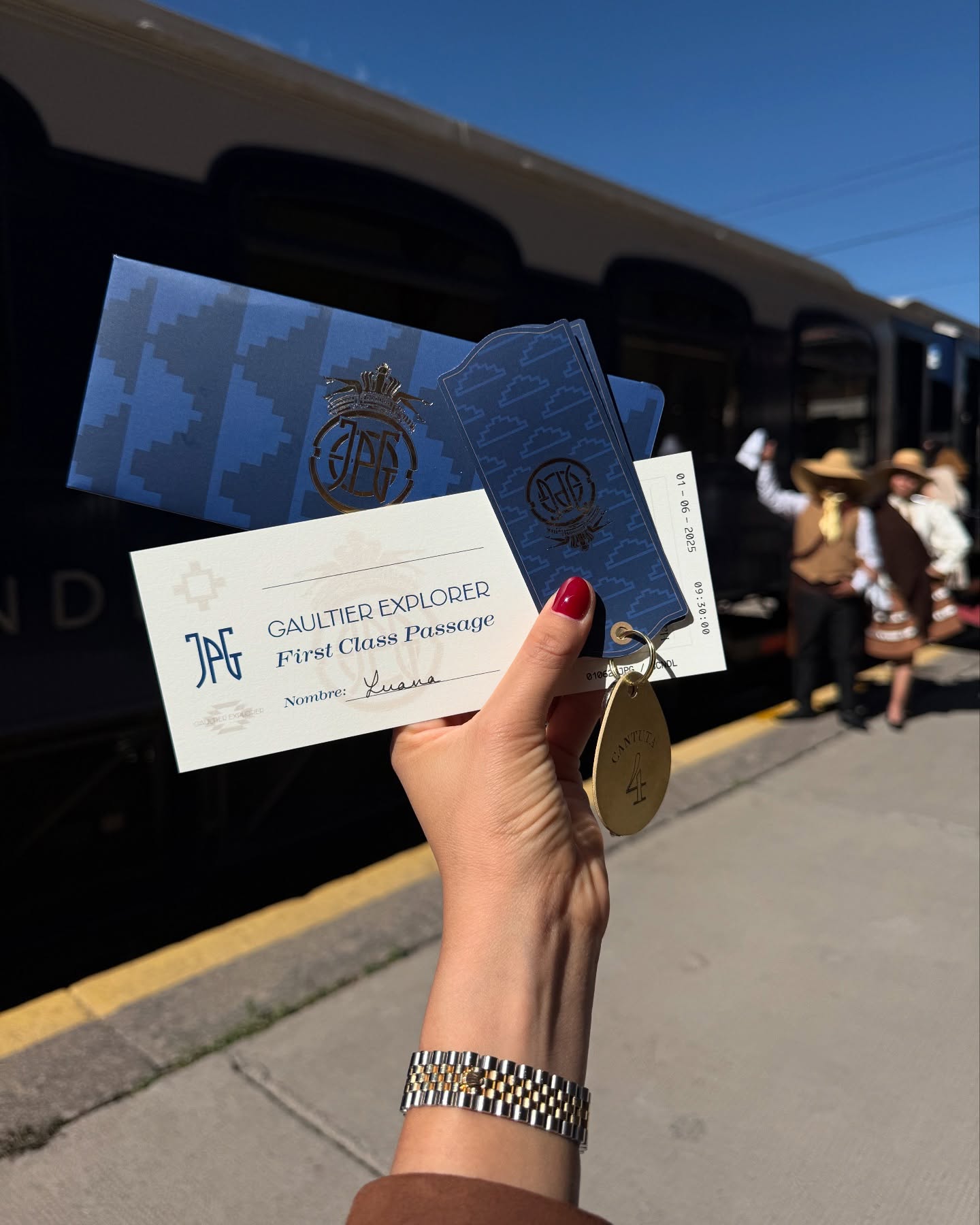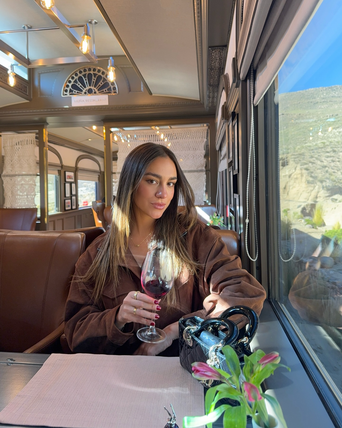 Regardez Luana Barron sur ce train Jean Paul Gaultier, sirotant son vin comme une reine des rails péruviens !