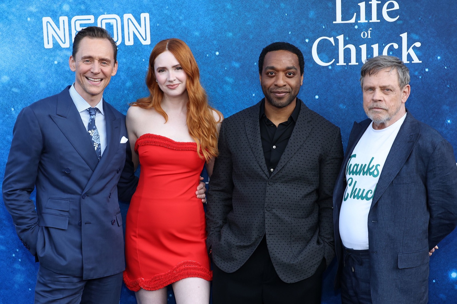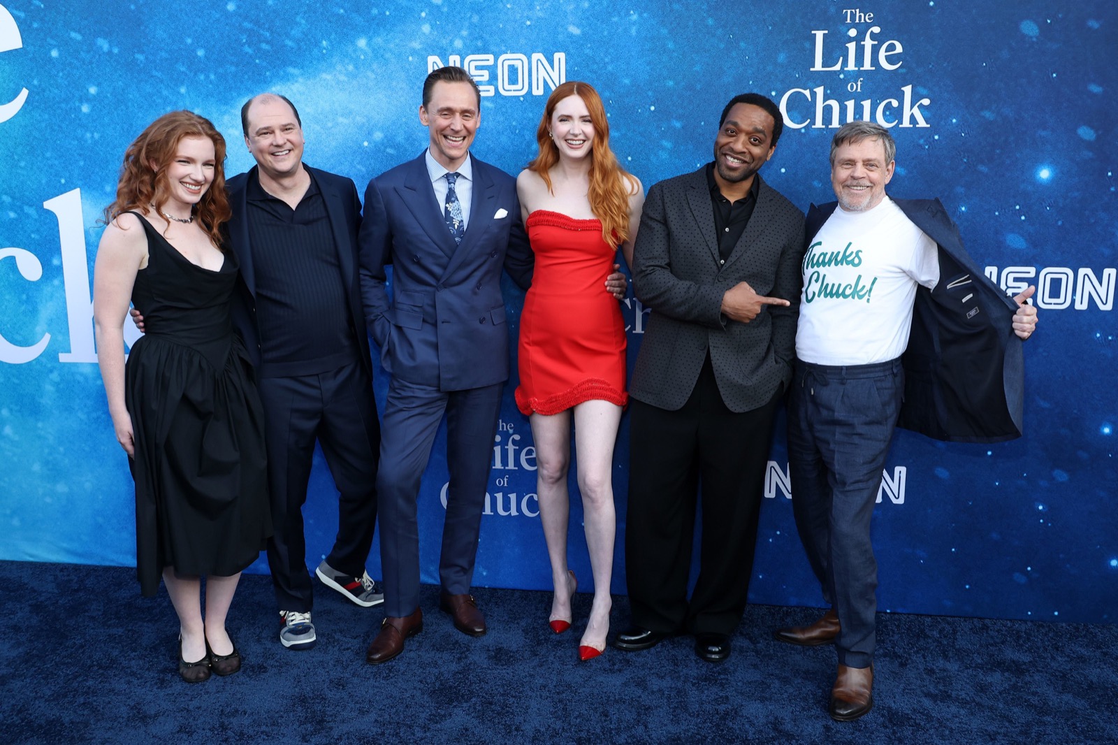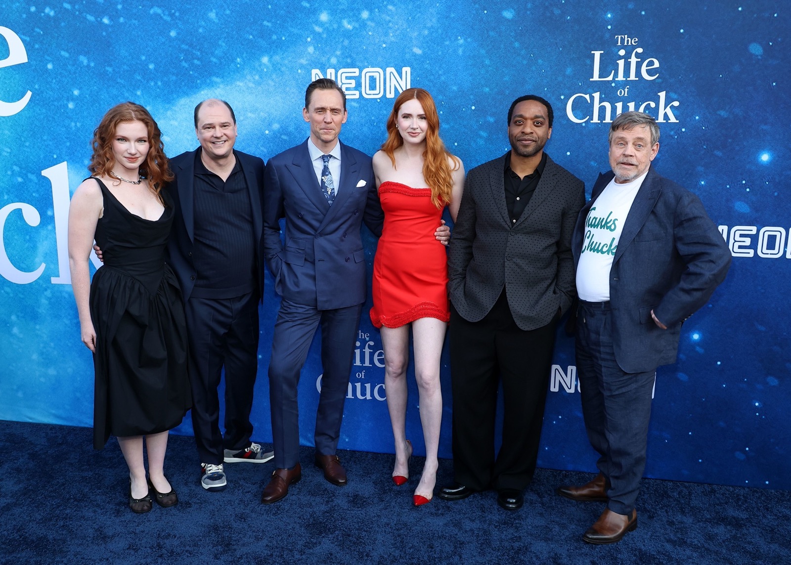 Entourée de ses collègues, elle pose comme une supernova, laissant les autres dans l’ombre (surtout celui avec le t-shirt bizarre !). On dirait qu’elle a décidé de jouer les héroïnes cosmiques, oubliant peut-être que le film n’est pas une suite de Guardians !