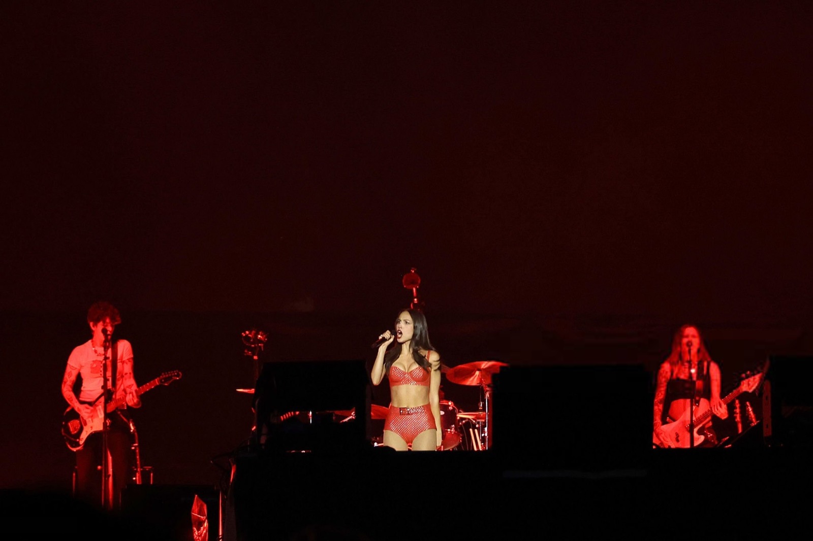 Olivia Rodrigo a électrisé le Governor's Ball à New York avec son maillot rouge à pois, comme si elle sortait d’un clip des années 50… avec une guitare !