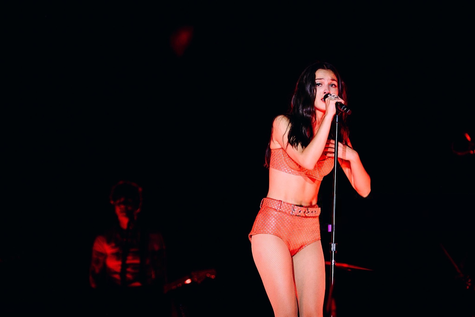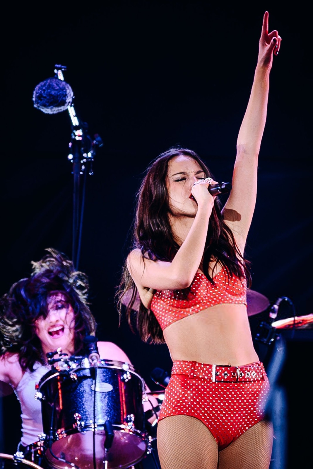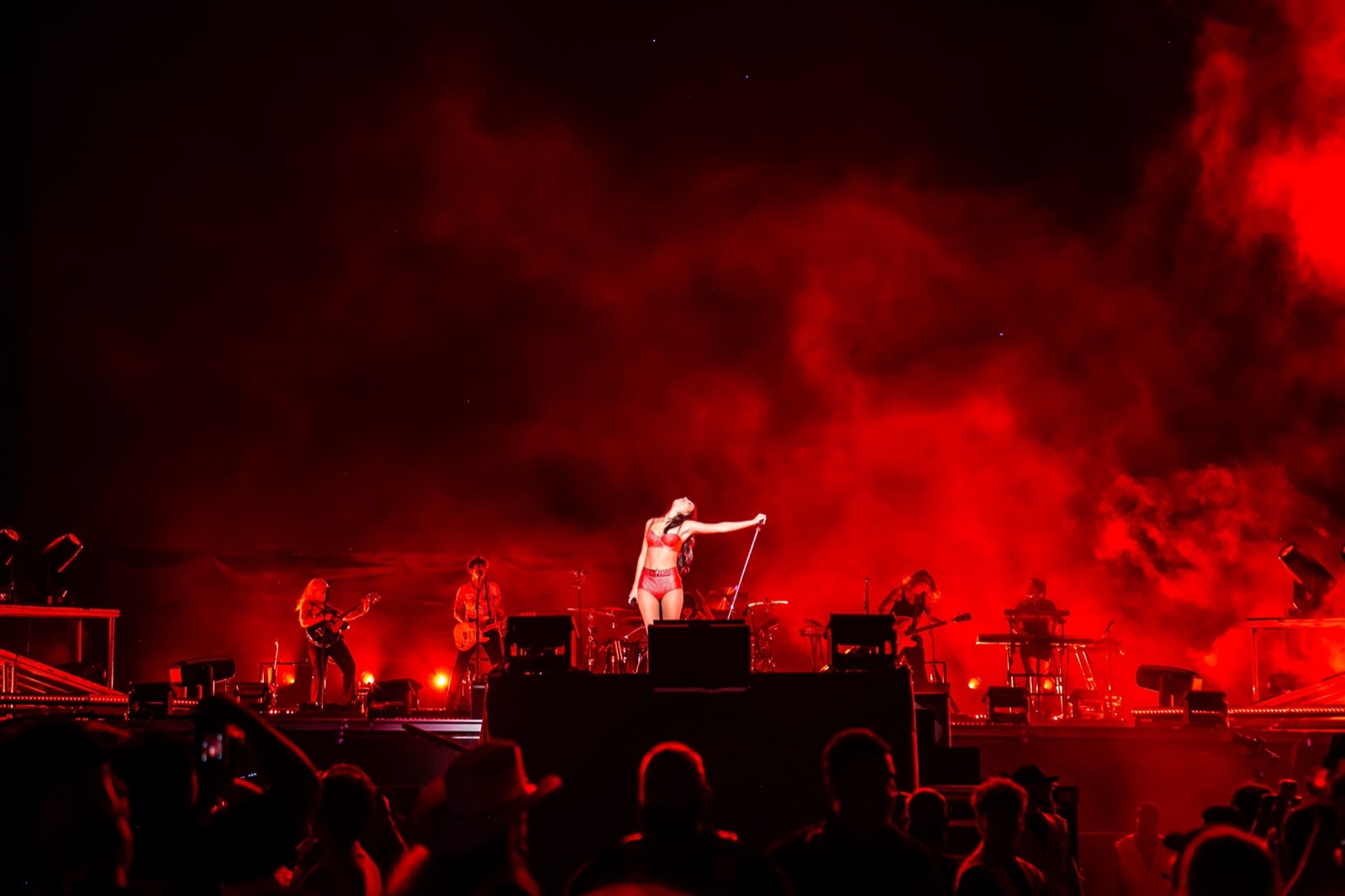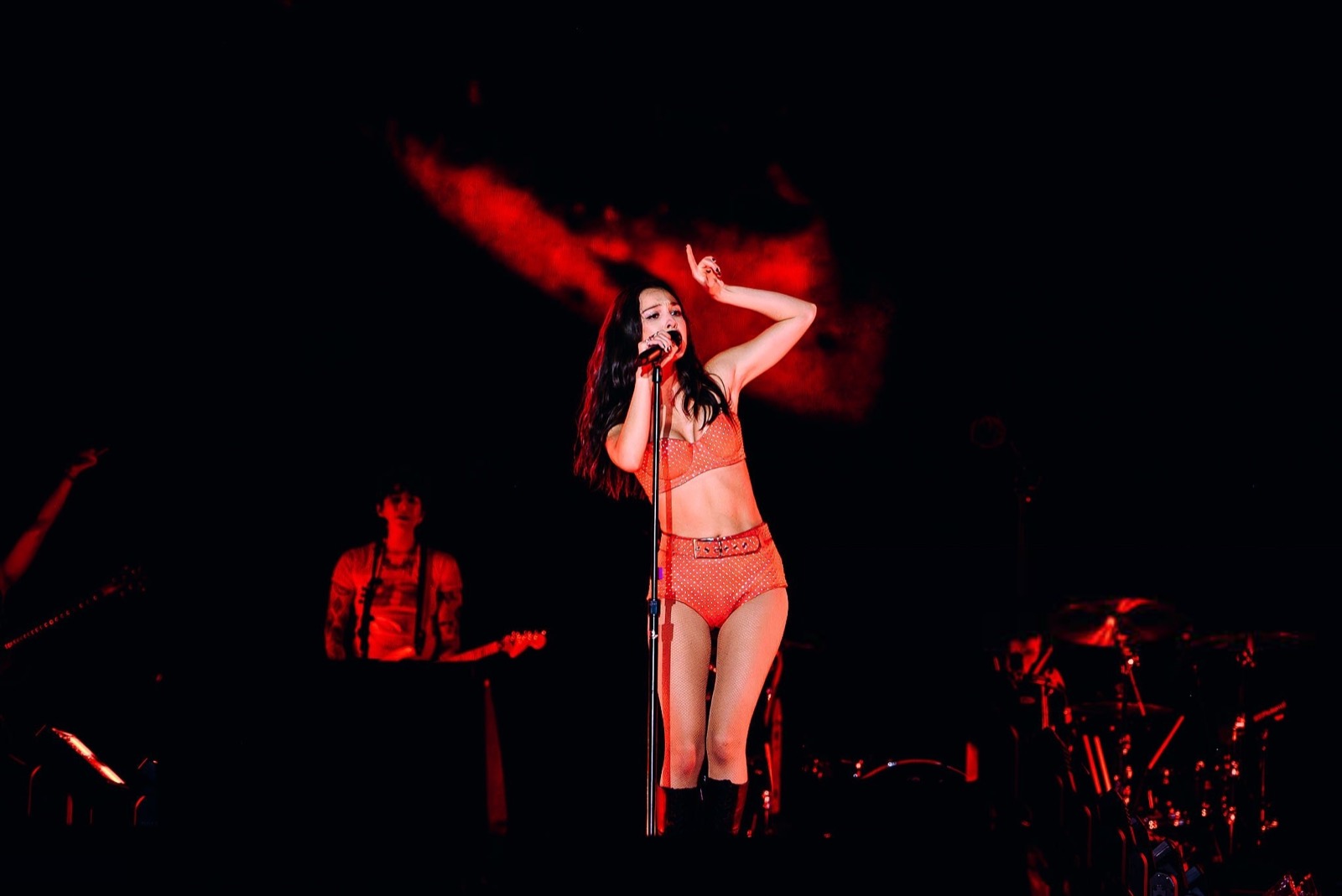 Entre ses poses de rockstar et ce micro qu’elle domine, elle a clairement décidé de faire fondre la foule sous les lumières violettes.