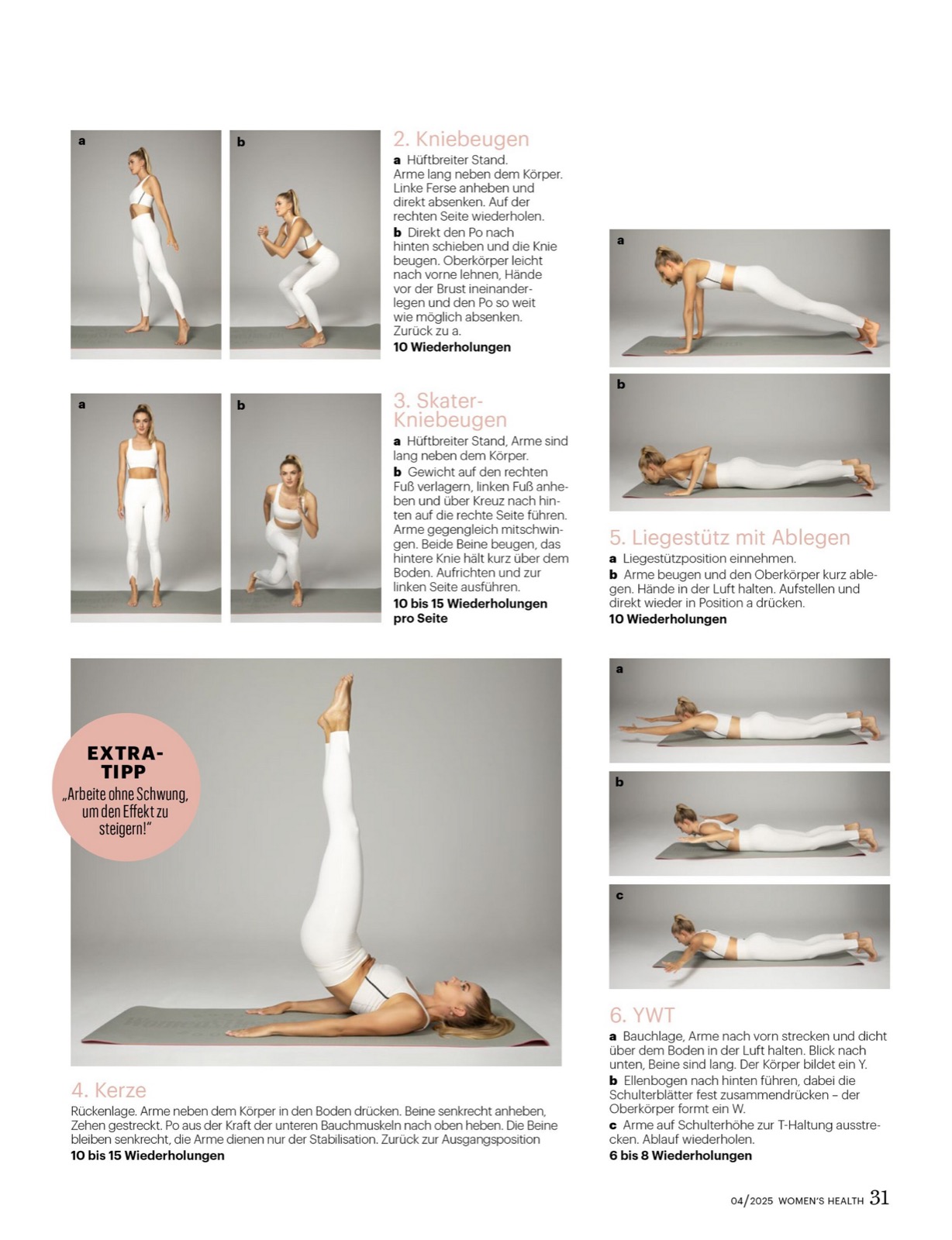 "Mein Geheimnis für straffe Haut" ? Sûrement un mélange de sueur, de magie et d’un abonnement à la salle qu’on n’aura jamais. Et ces exercices de core stability, on dirait une torture déguisée en séance zen.