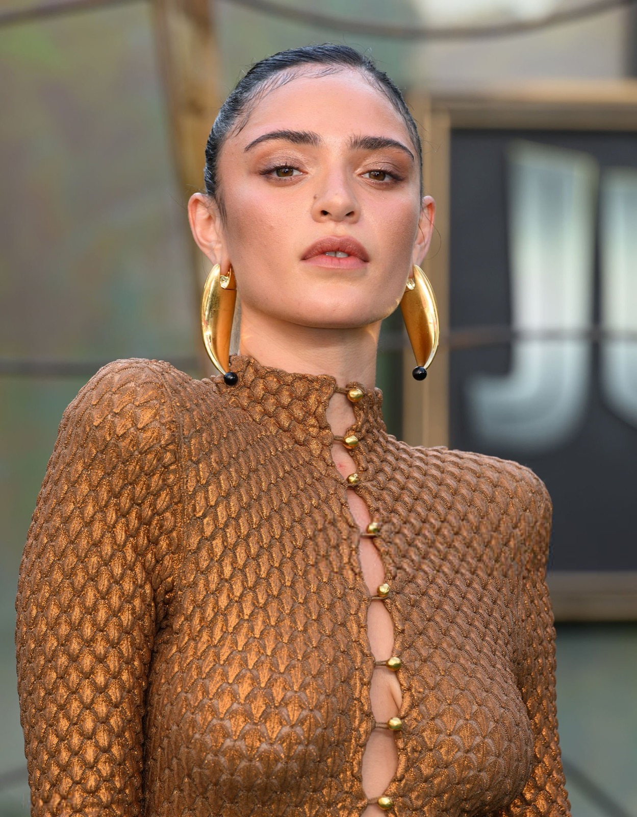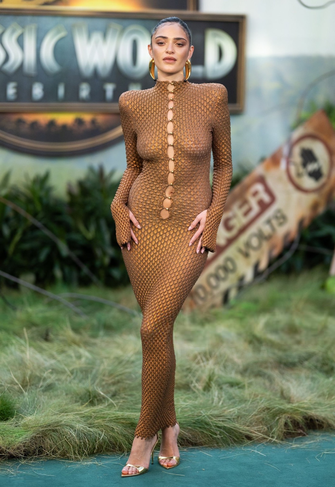 Avec sa robe bronze qui crie je suis un dinosaure chic, elle a clairement décidé de dompter les foules comme un T-Rex sur talons.