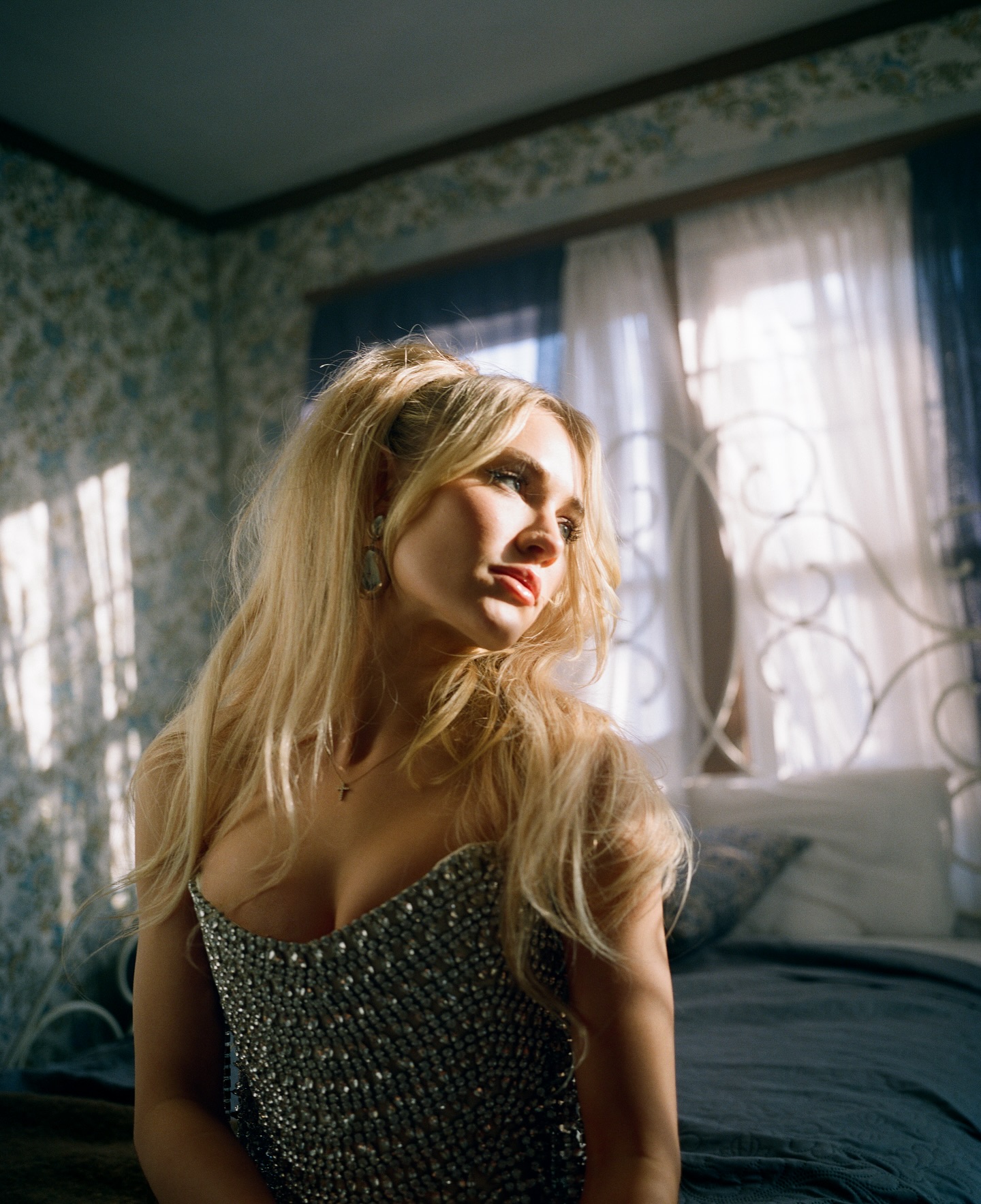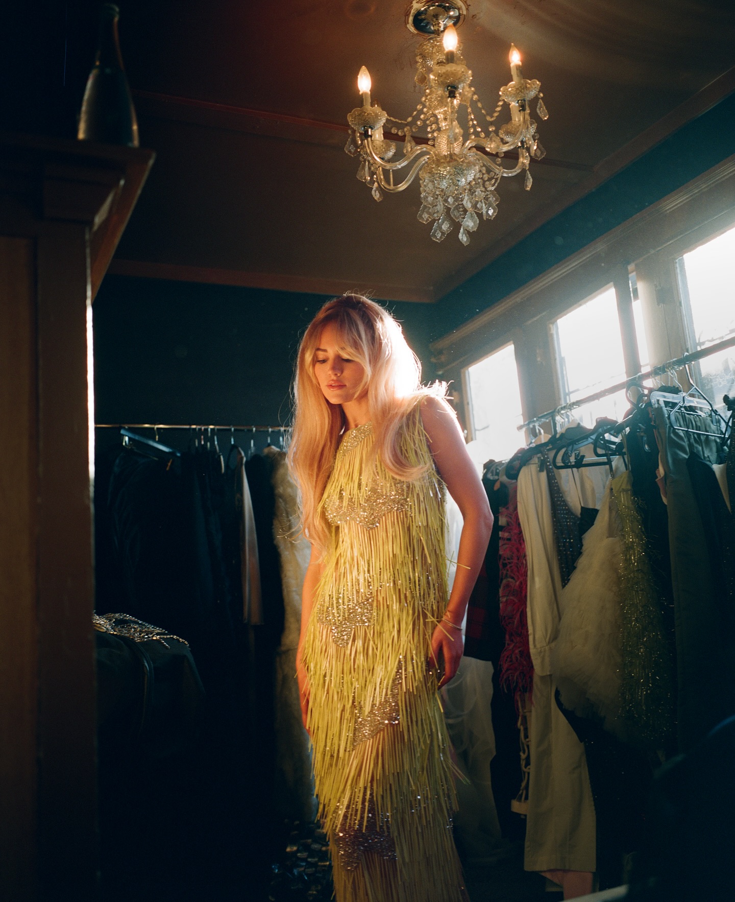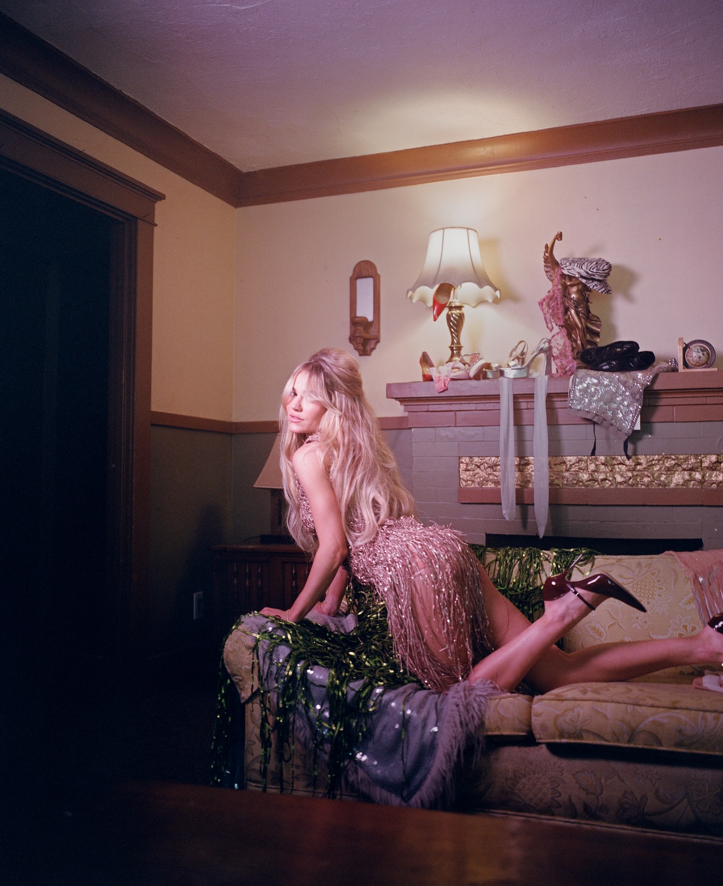 Michelle Randolph sur iMAGINE Magazine de juin 2025, perchée comme une diva sous un lustre de conte de fées !