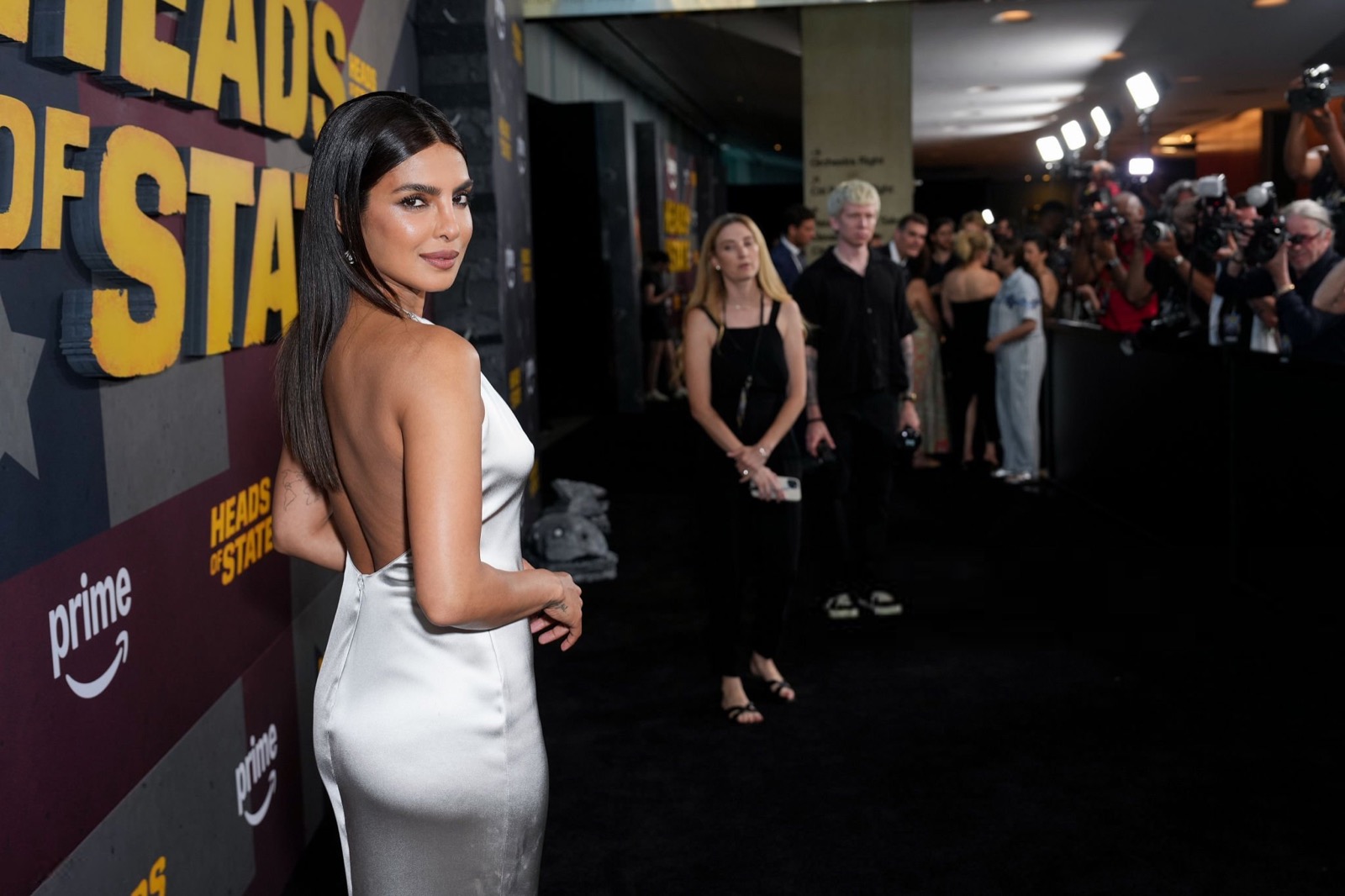 Priyanka Chopra à la première mondiale de Heads of State à New York, où elle domine le tapis rouge comme une espionne chic ! Sa robe scintillante, moitié armure, moitié étoile filante, défie les flashs avec panache.