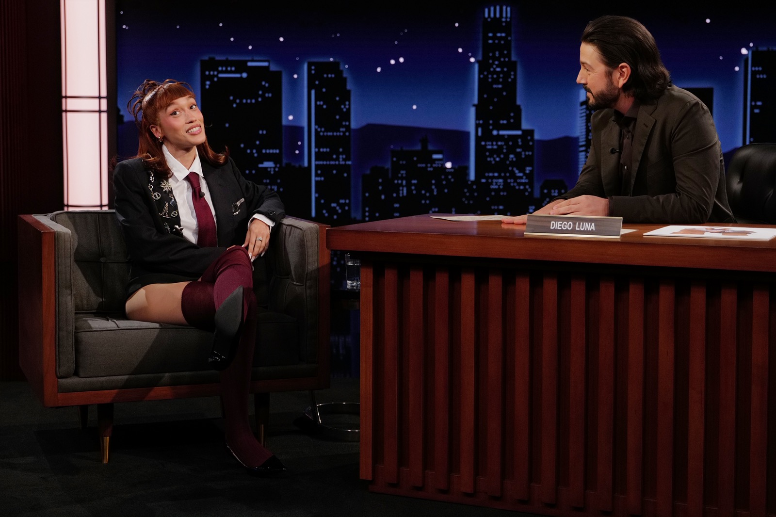 Nezza vole la vedette à Jimmy Kimmel avec son look d’écolière rock !