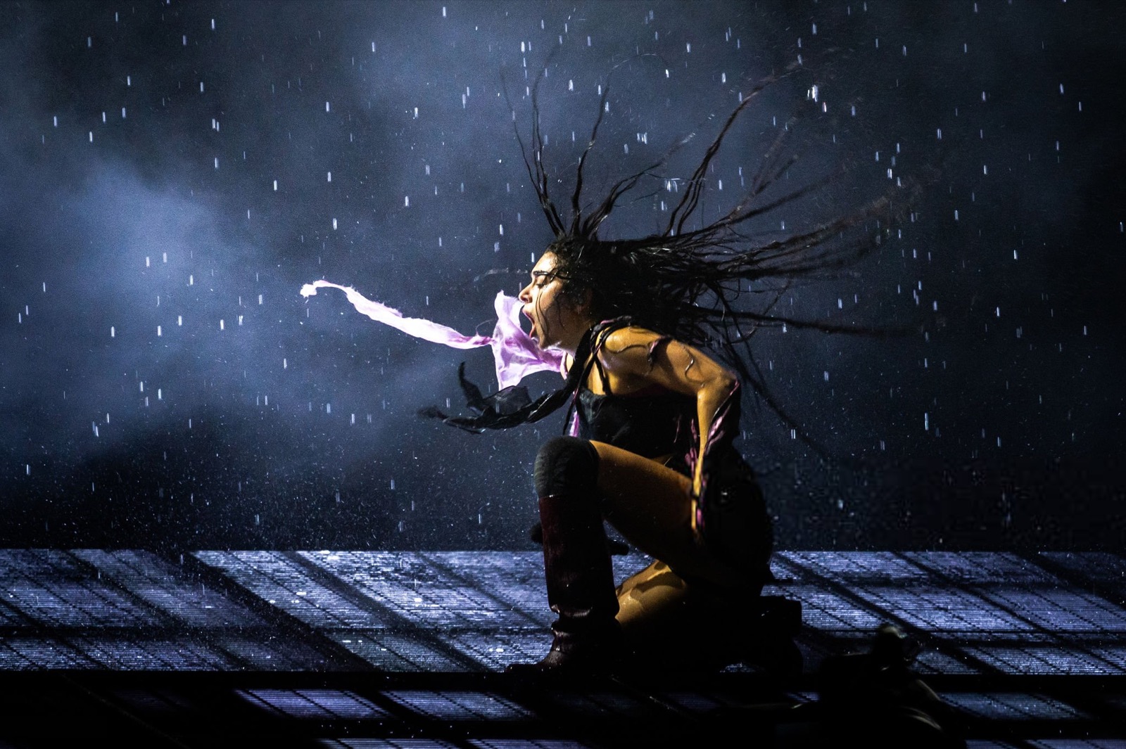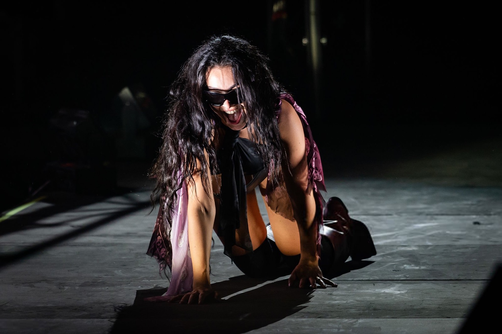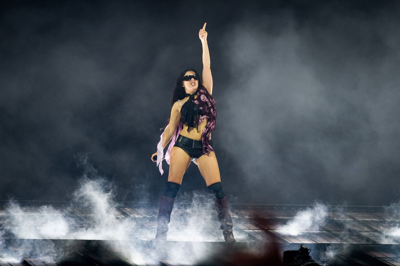 Avec toute cette fumée, on se demande si elle chante ou si elle exorcise la foule !