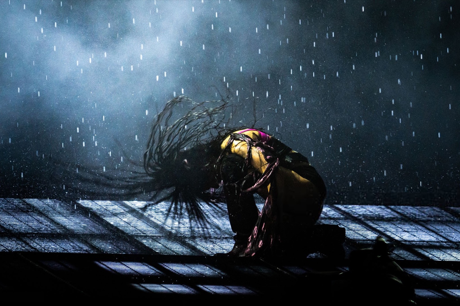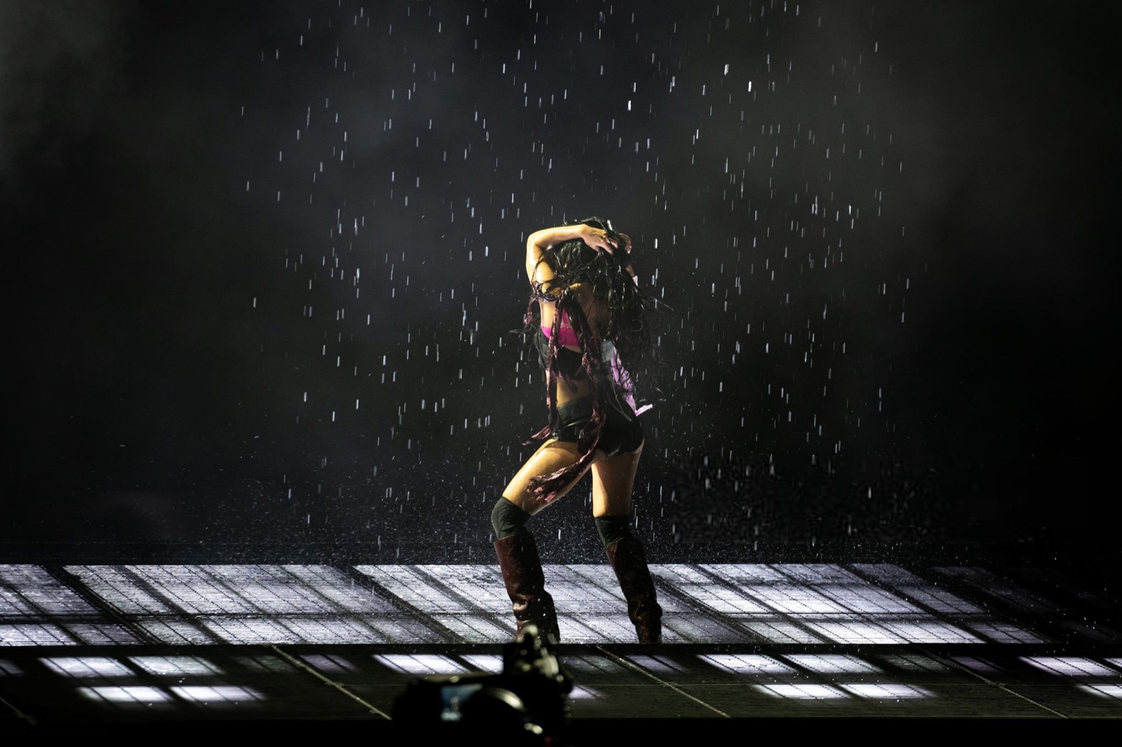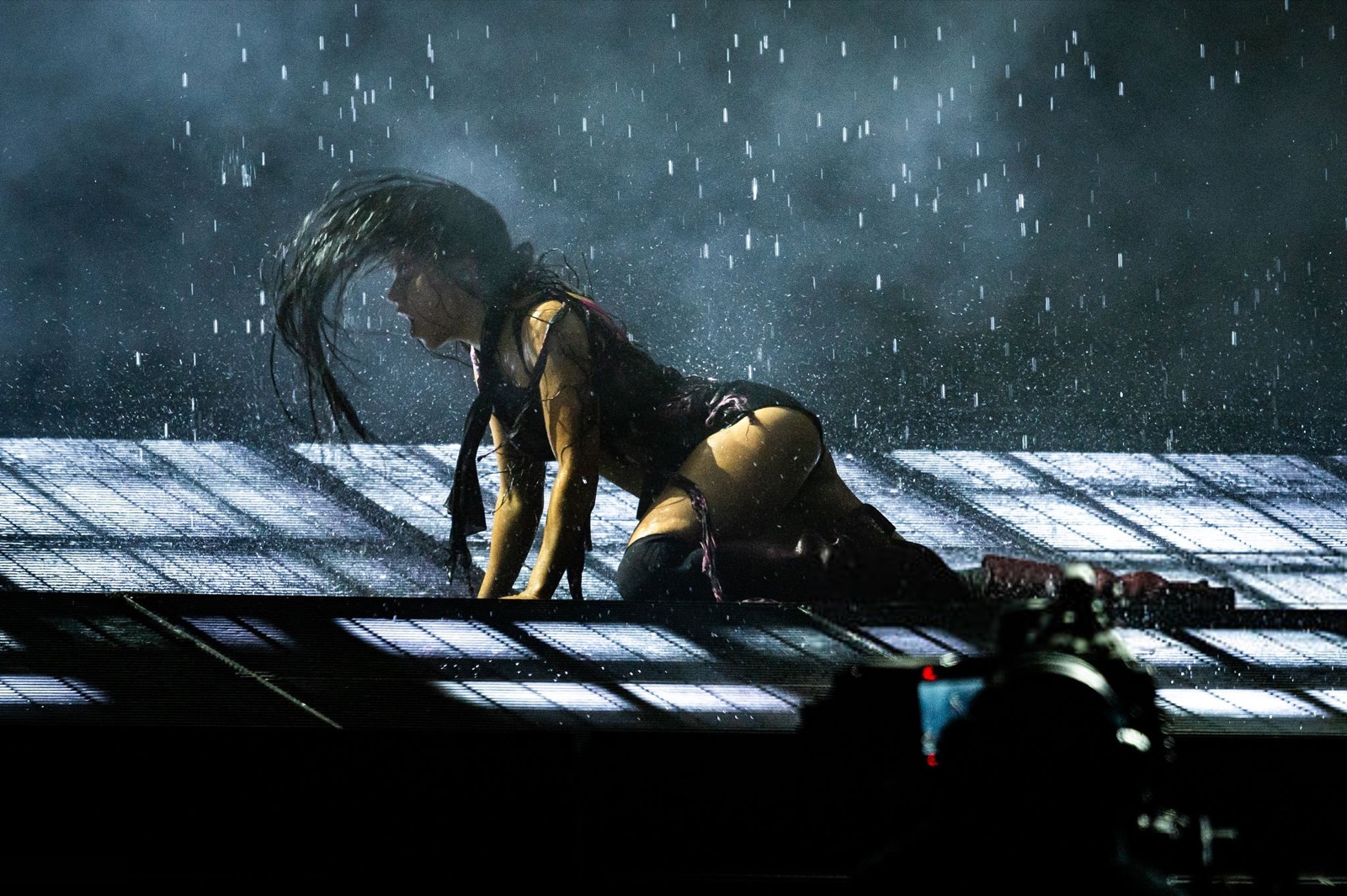 Avec toute cette fumée, on se demande si elle chante ou si elle exorcise la foule !