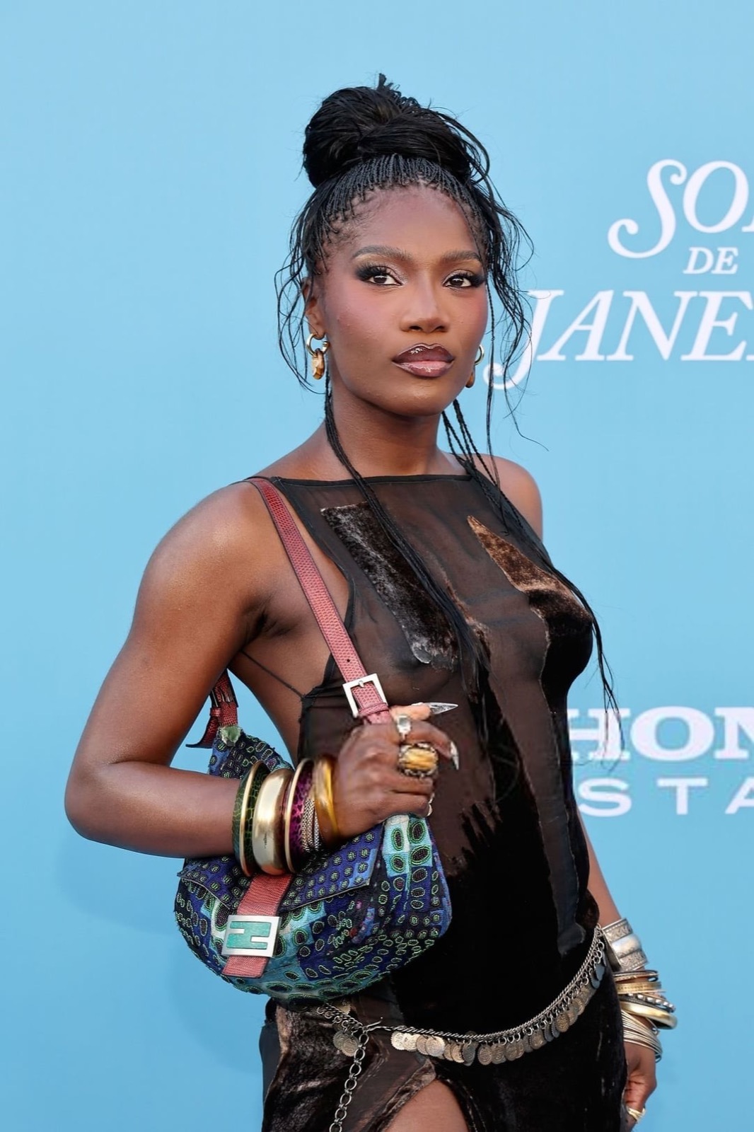 Regardez-moi cette entrée spectaculaire ! Ce haut transparent, ces franges dramatiques et ce sac qui hurle "j’ai été tricoté par un artiste en crise existentielle" – un chef-d’œuvre de chaos stylistique !
