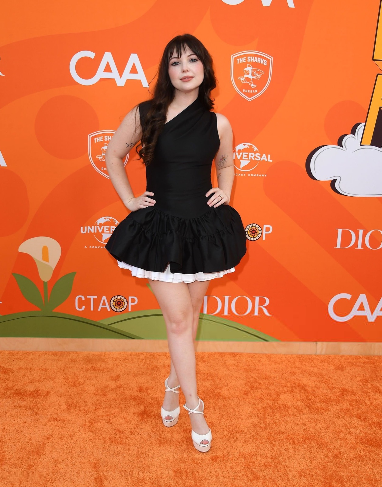 Sammi Hanratty nous gratifie d’une tenue qui crie "j’ai essayé trop fort" ! Les talons vertigineux et le tatouage discret tentent de sauver la mise, mais on dirait une écolière rebelle perdue dans un défilé de mode raté.