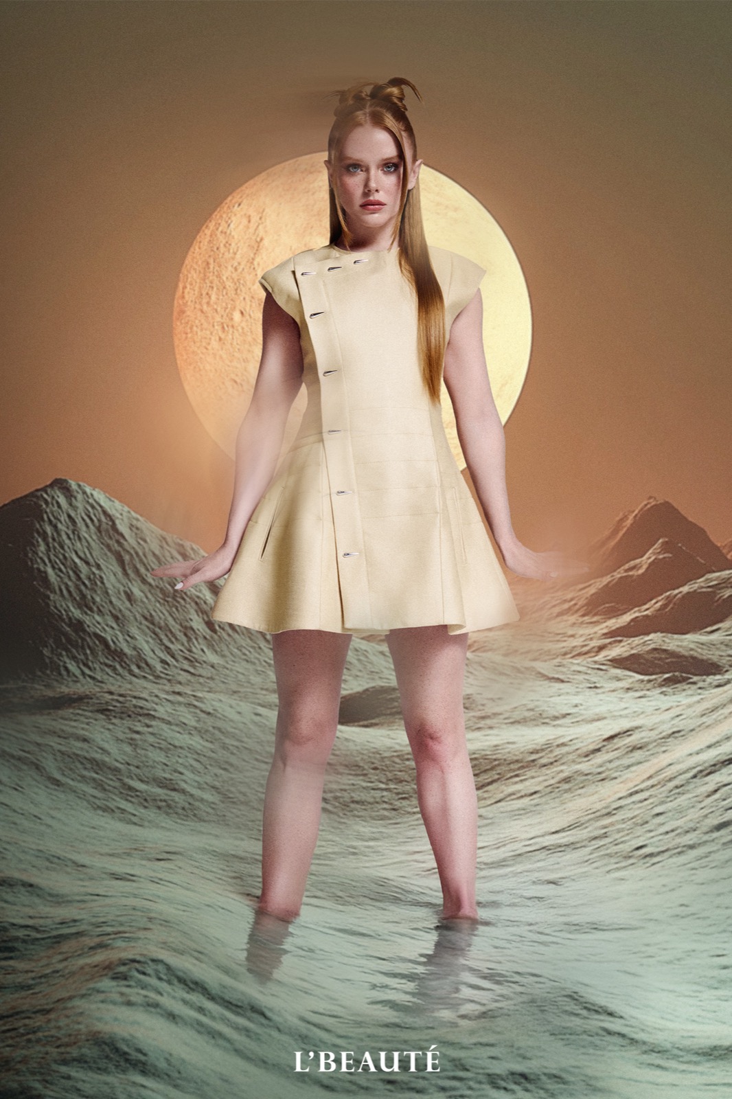 Abigail Cowen nous éblouit dans un shooting L’Beaute aussi dramatique qu’ironique ! Avec son pull noir et blanc qui hurle "je suis une artiste torturée", elle pose comme si chaque clic d’appareil photo était une œuvre d’art.