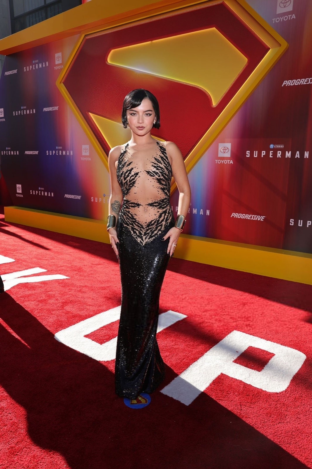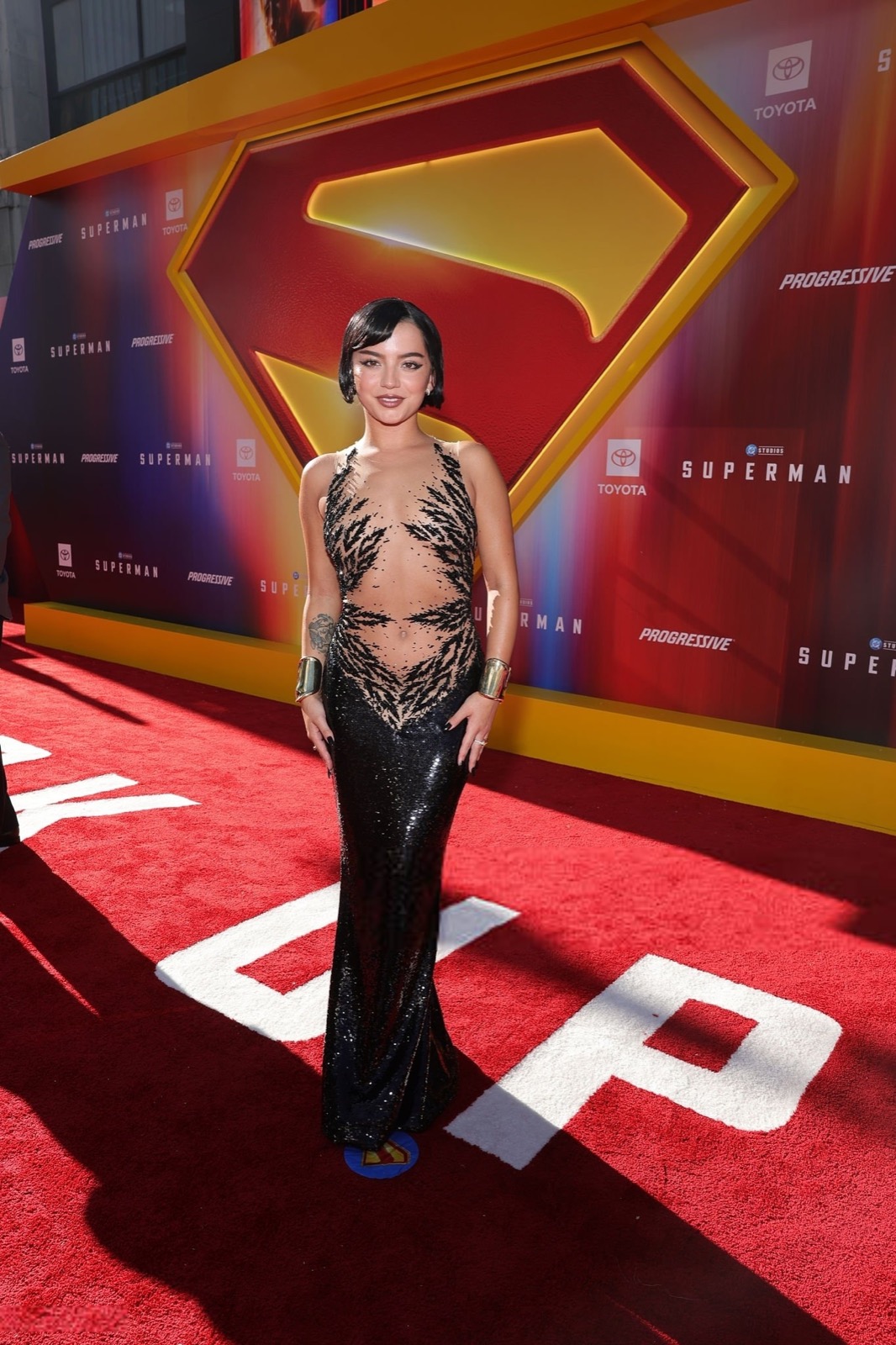 Isabela Merced ose tout à la première de Superman ! Cette robe transparente ornée de motifs noirs, digne d’un décor de super-héros, semble crier "regardez-moi" sur le tapis rouge.