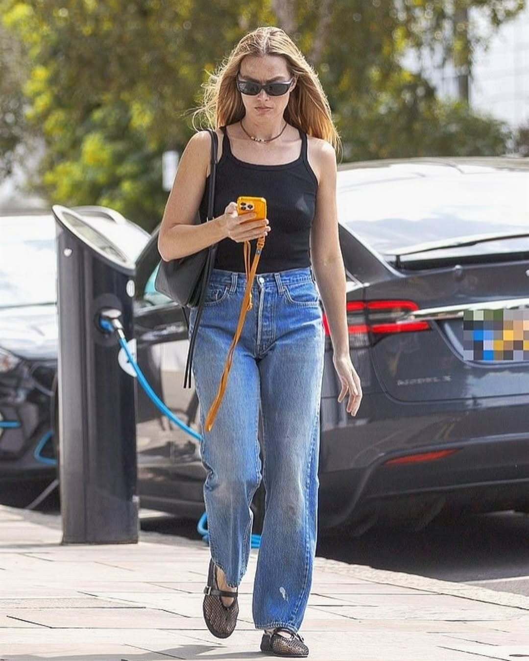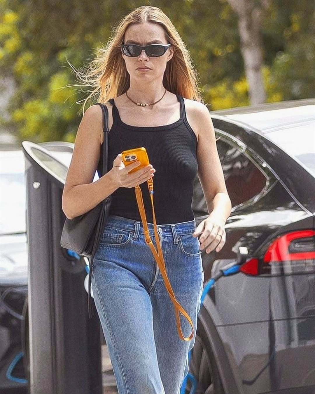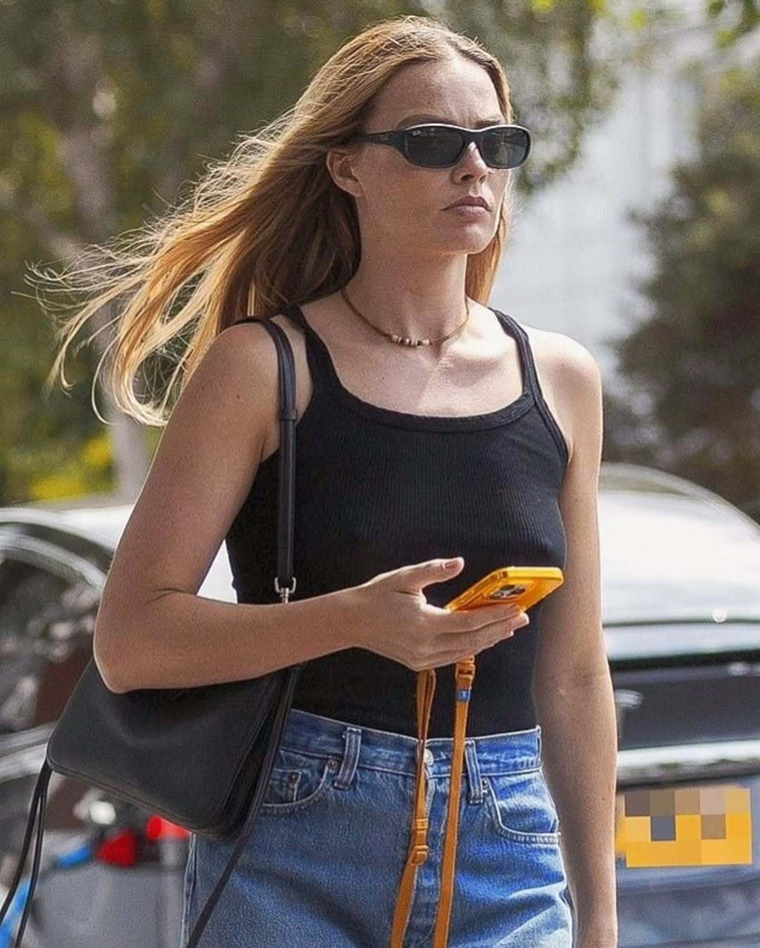 Margot Robbie défile à Londres avec style et un téléphone flashy