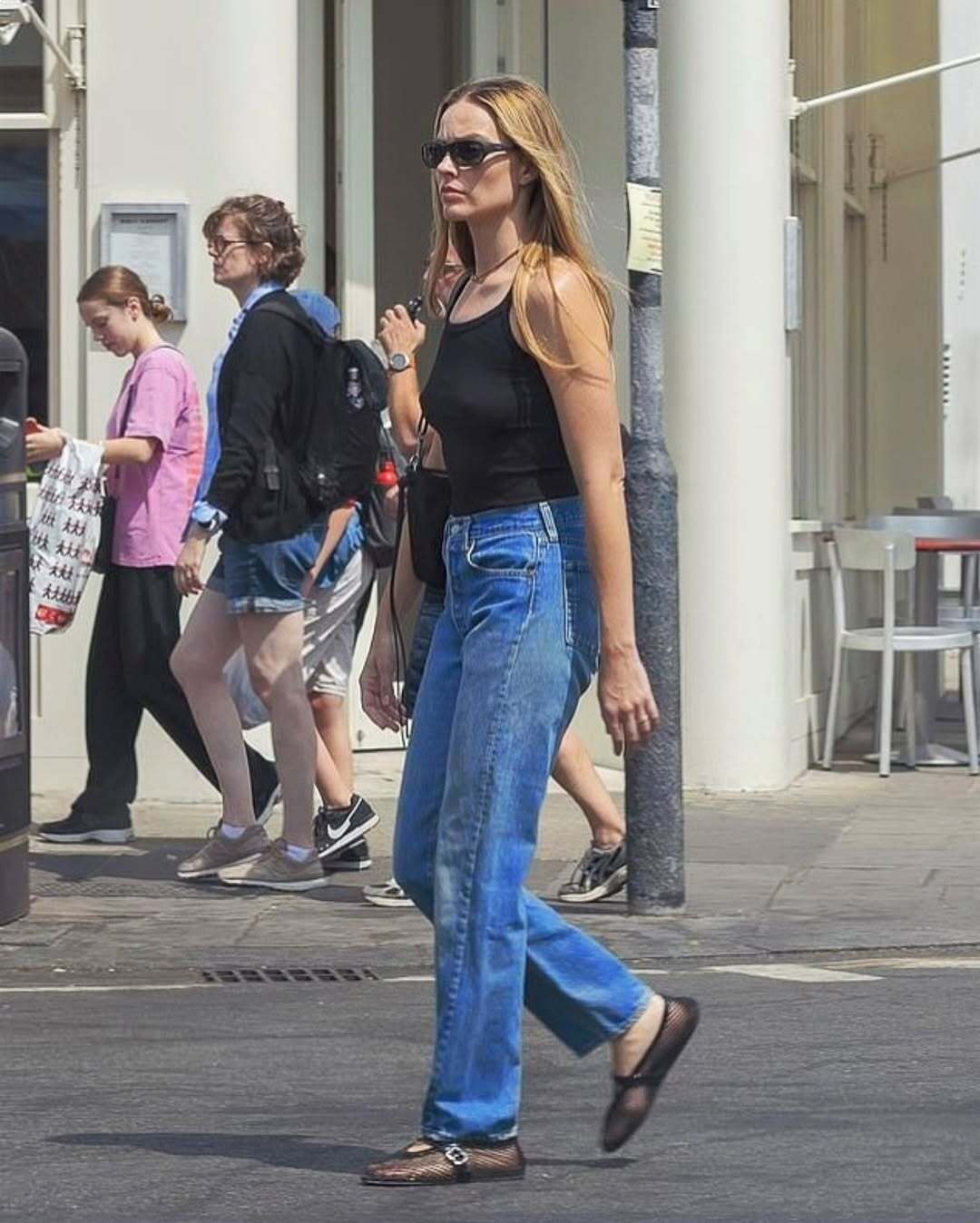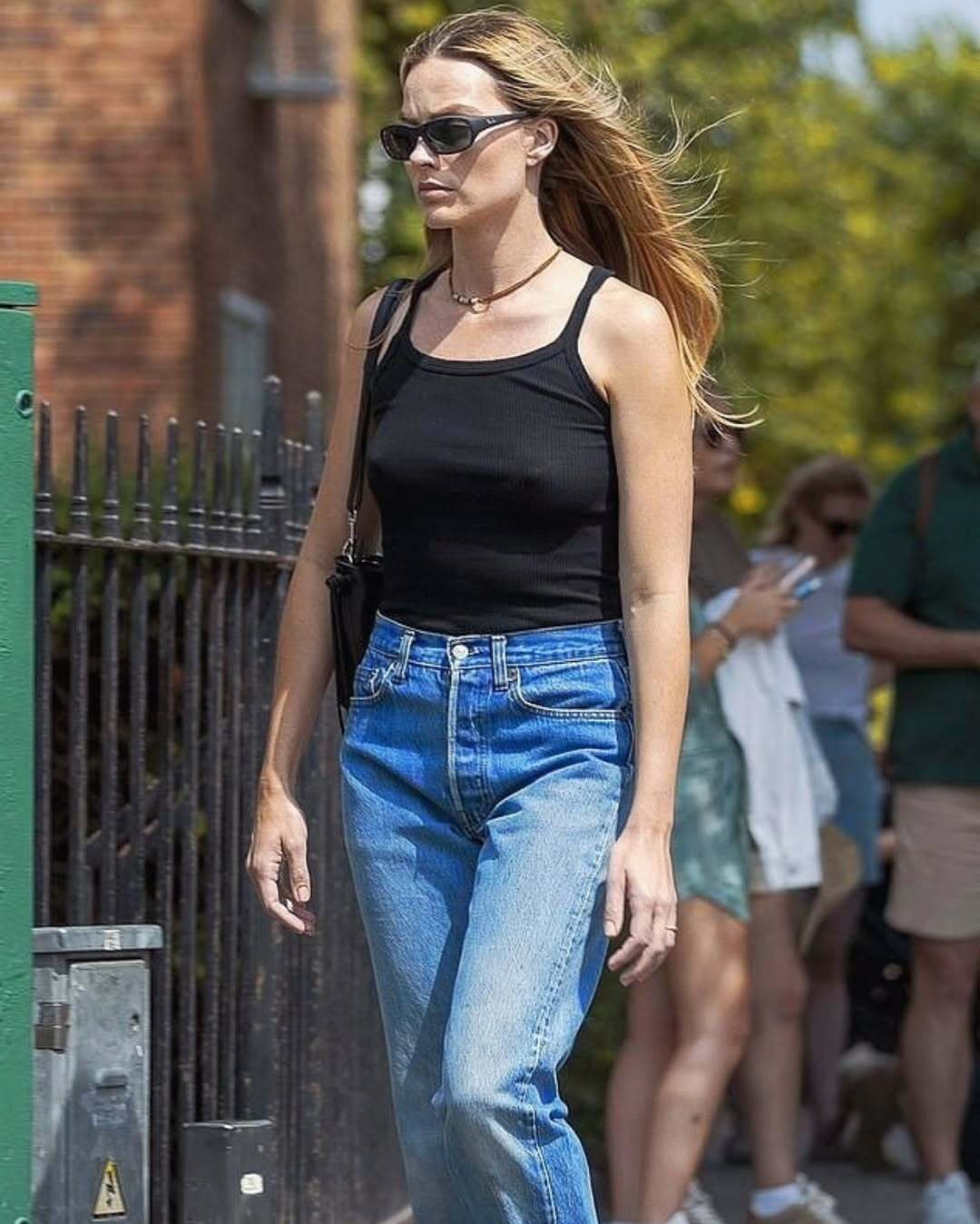 Margot Robbie, reine des rues londoniennes ! Avec ses lunettes de soleil et sa démarche de star, elle semble dire : « Oui, je suis trop cool pour vous tous. » Le vent dans ses cheveux ?