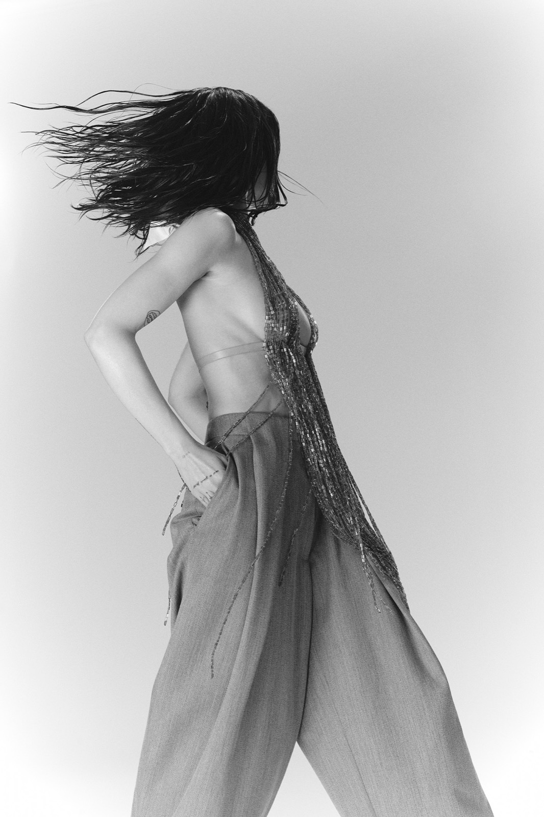 Dans une autre pose, elle s’offre un look minimaliste en noir et blanc, cheveux au vent, comme si elle défiait le vent de la mode. Récemment, Dove Cameron a annoncé une tournée européenne pour promouvoir son dernier album.