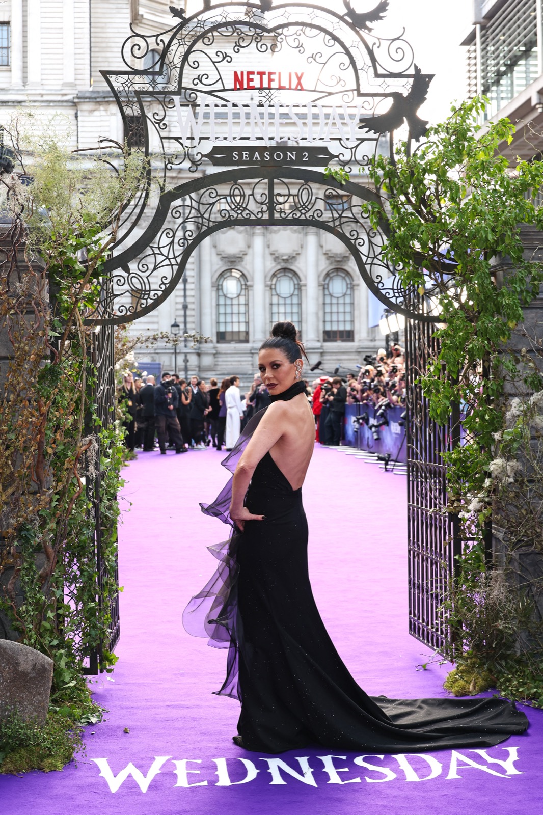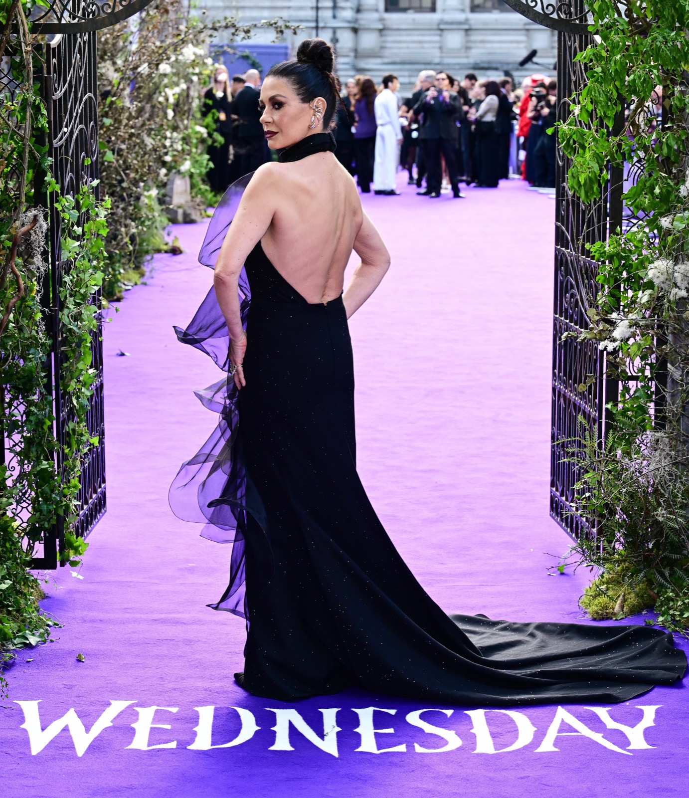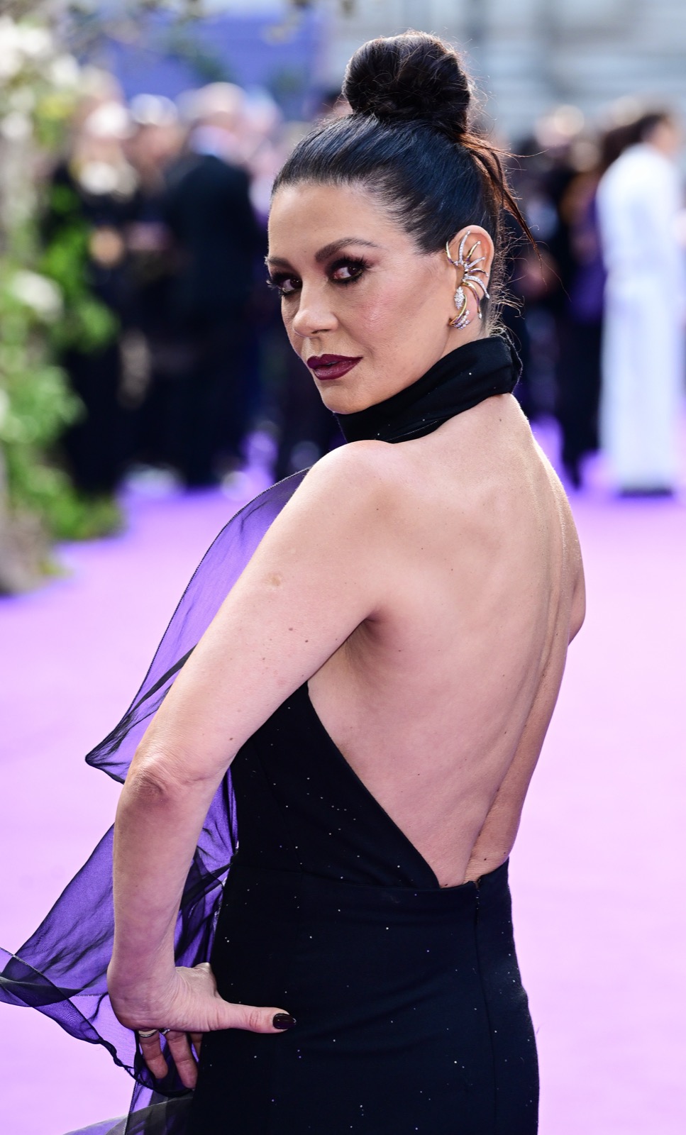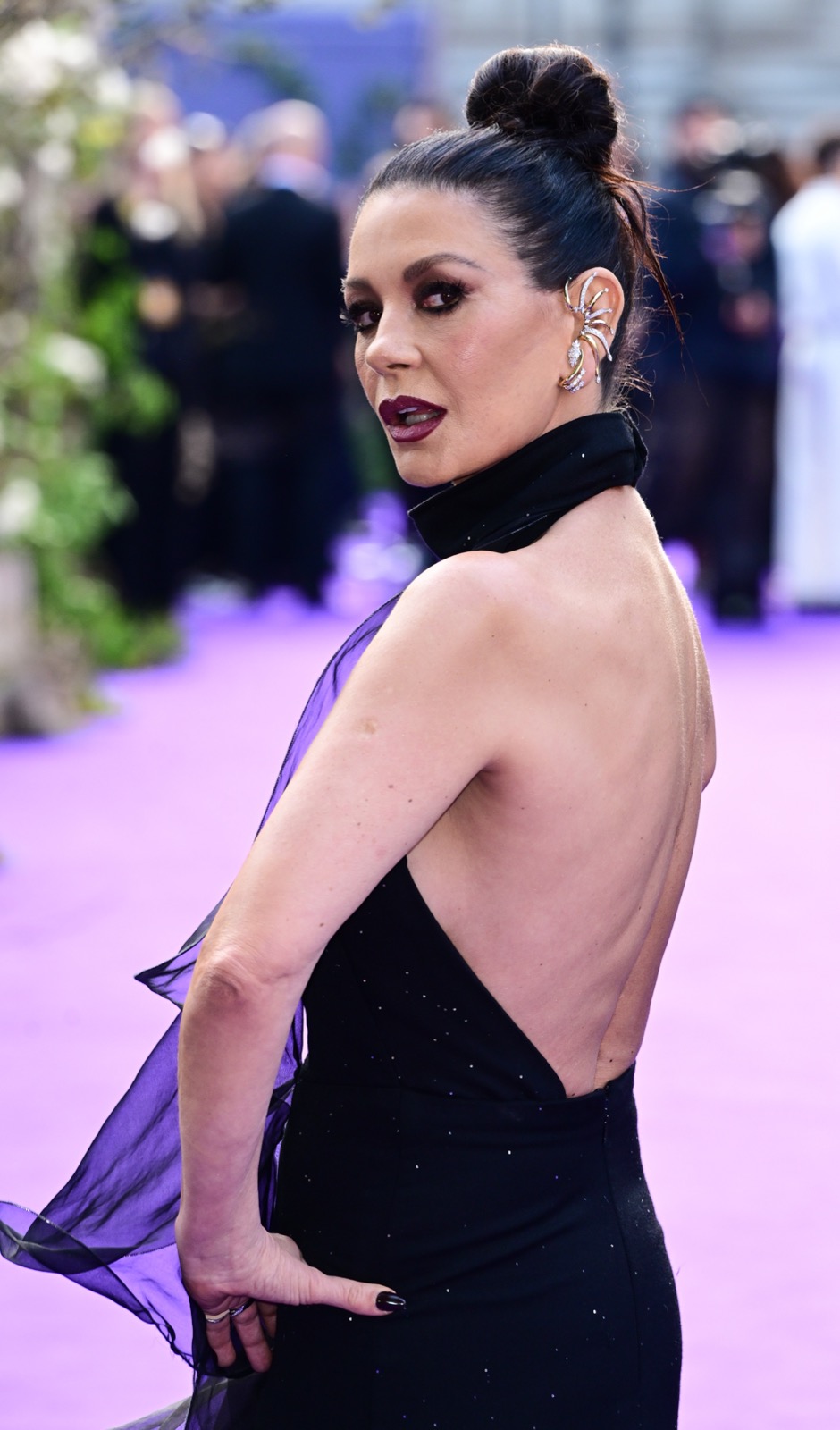 Catherine Zeta-Jones sur le tapis violet de Wednesday, c’est un peu comme si Morticia Addams avait rendez-vous chez un couturier haute couture… mais avait oublié sa cape dans la voiture.