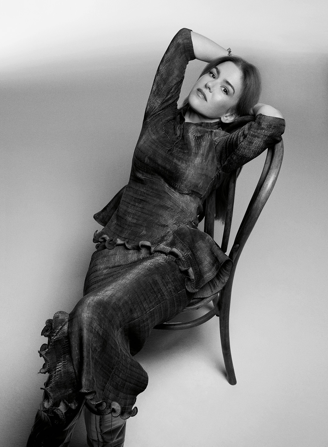 On sent que l’actrice maîtrise parfaitement la pose du bras négligemment jeté sur la tête, le regard conquérant et la chevelure domptée par le vent du studio.