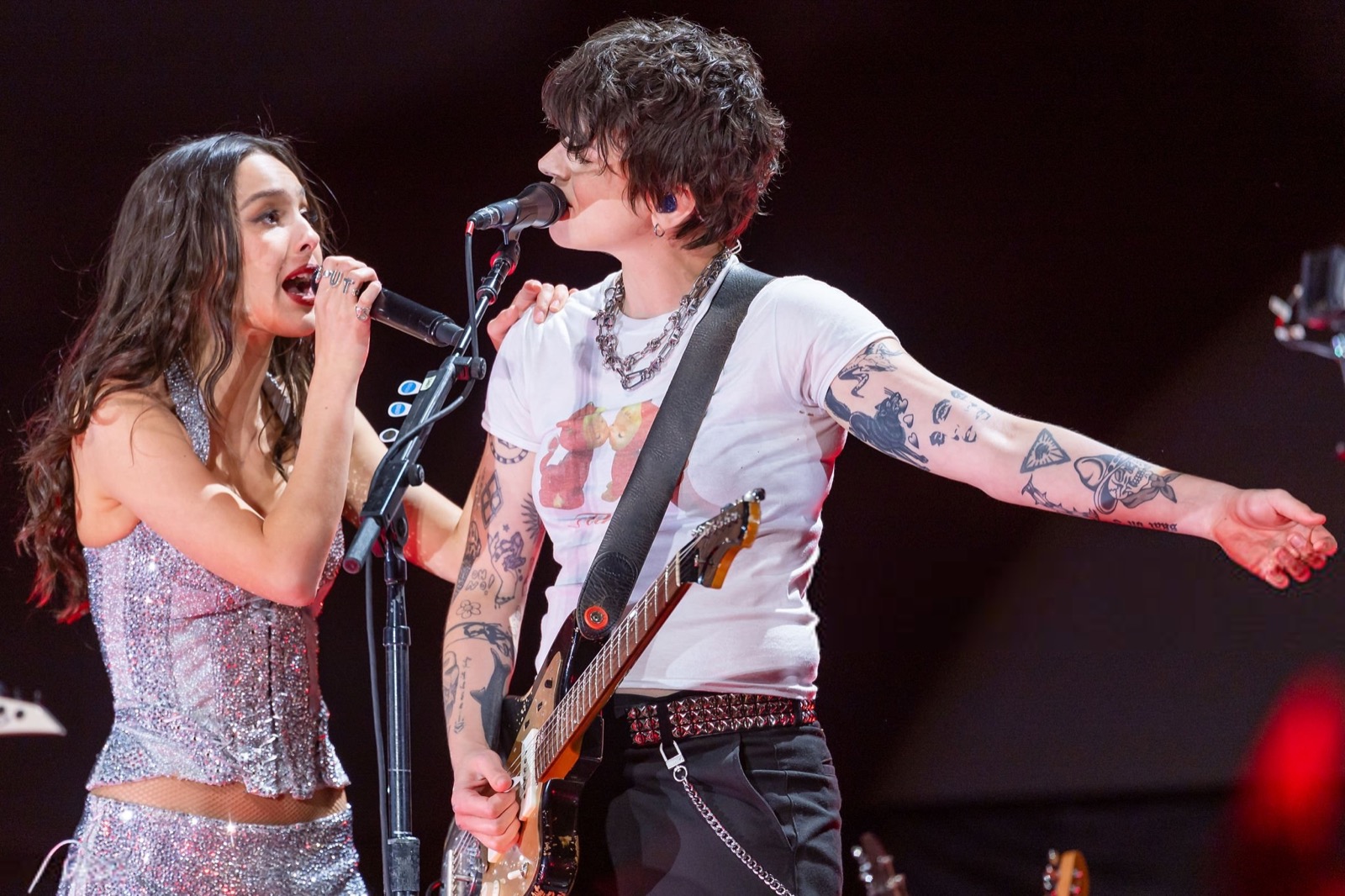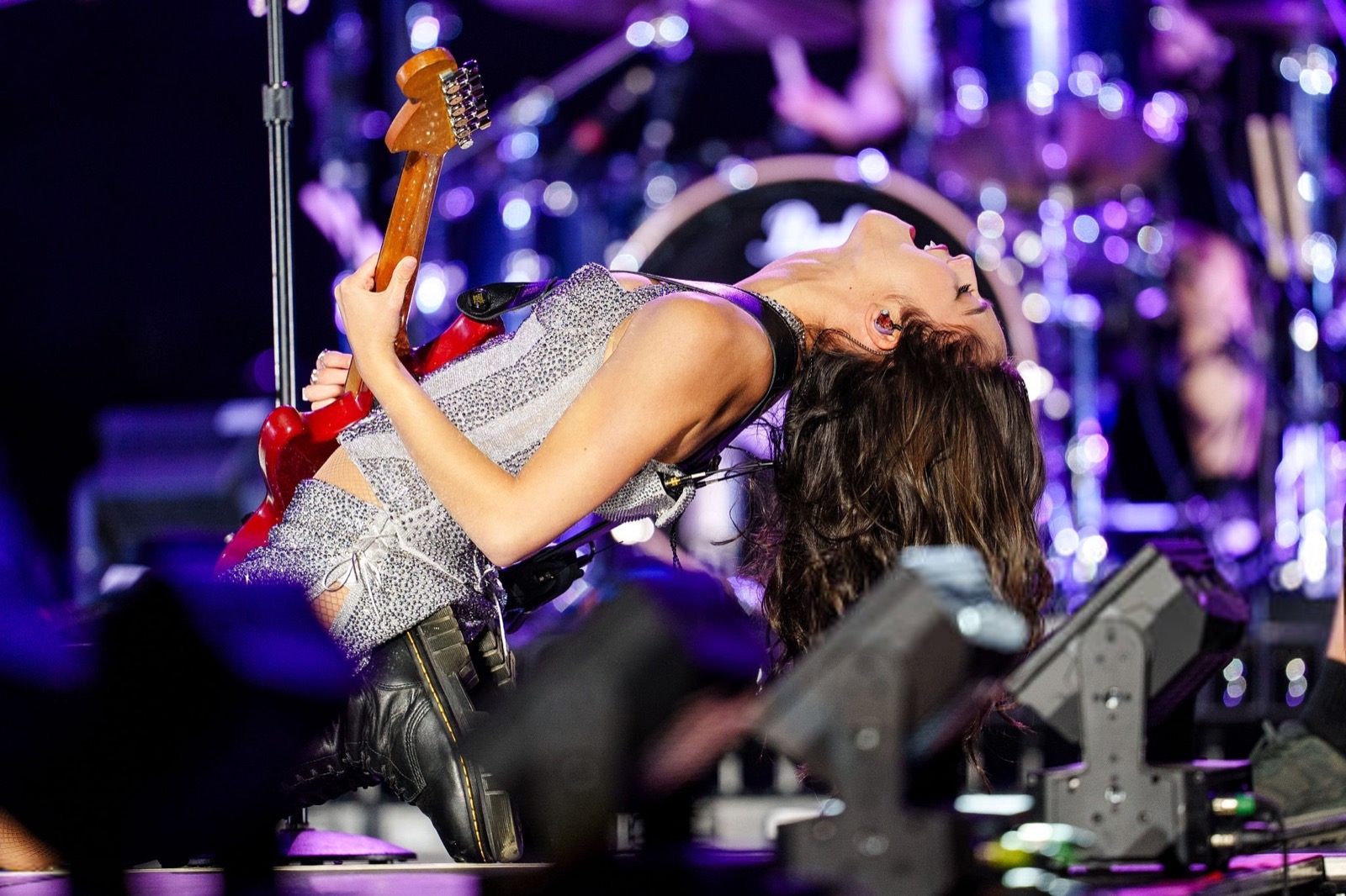 Entre un regard de défi, une guitare rouge brandie comme une arme et des poses théâtrales, elle a prouvé qu’elle maîtrise autant l’art de la grimace expressive que celui de la note tenue.