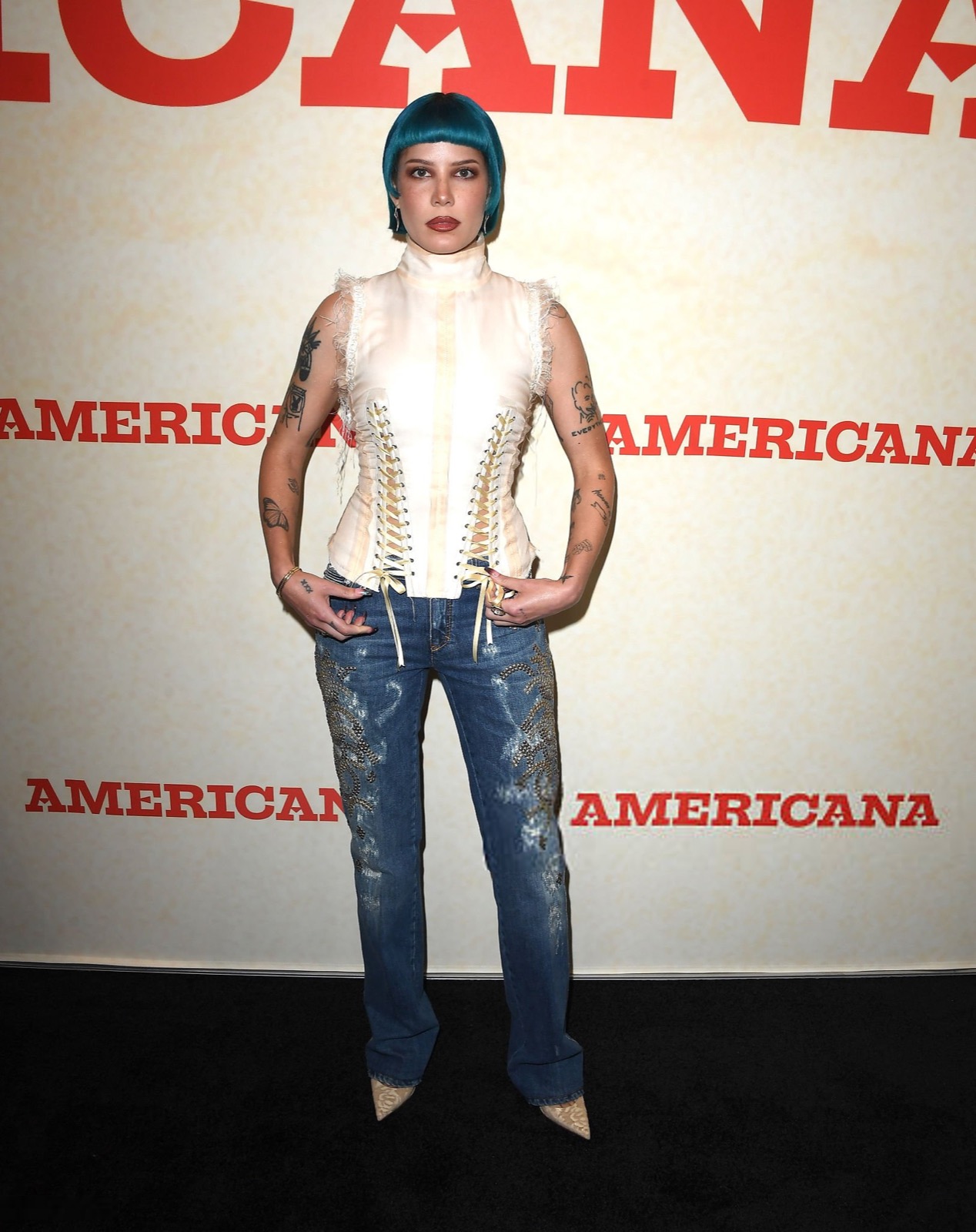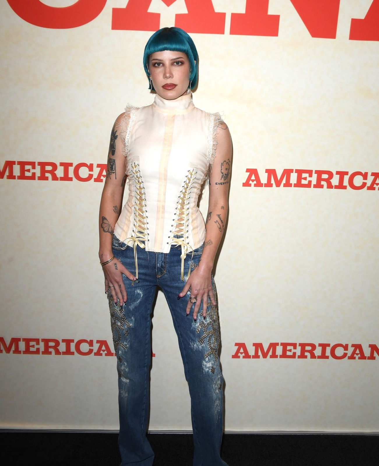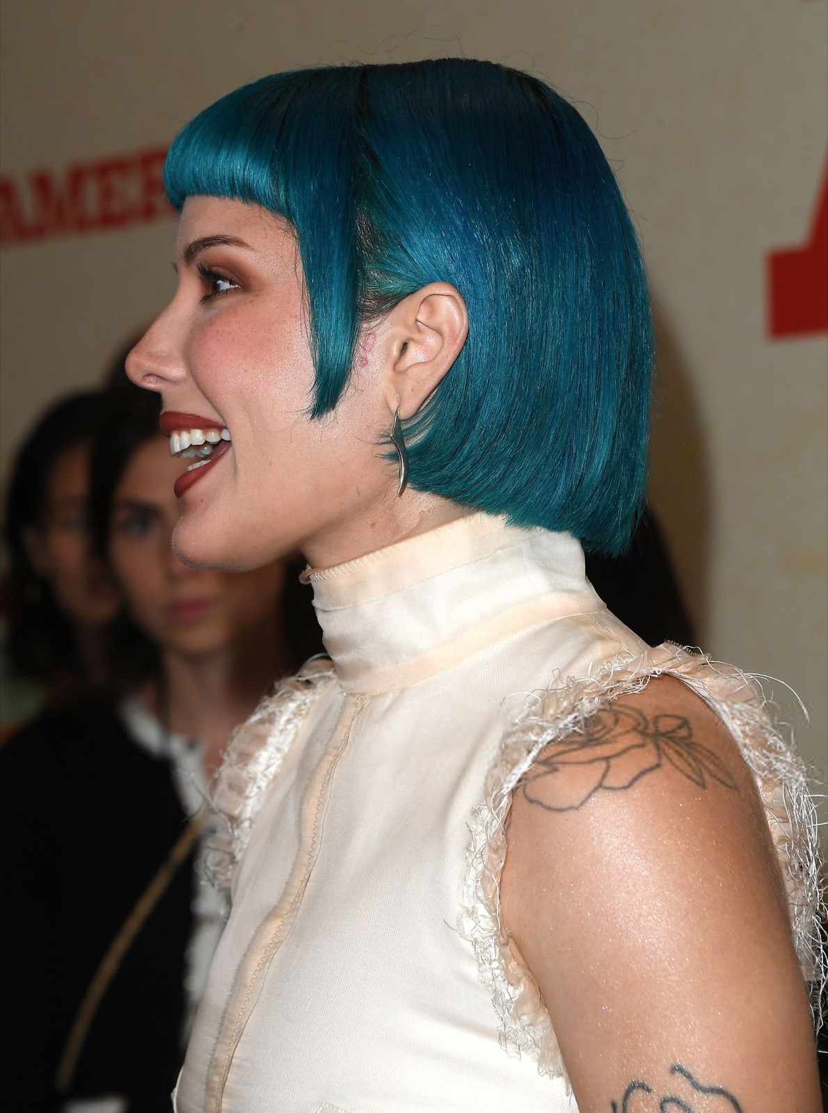 Toujours prête à bousculer les codes, Halsey est arrivée à la projection spéciale d’Americana au Desert 5 Spot de Los Angeles avec un look qui ferait pâlir un nuancier Pantone.