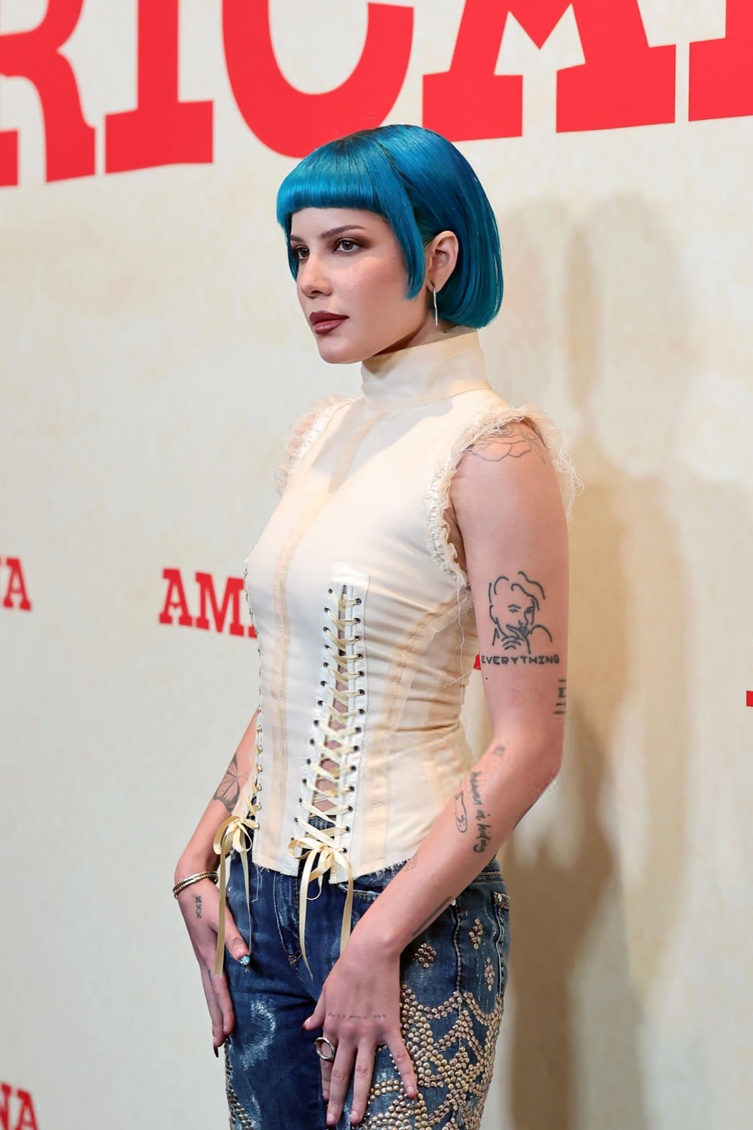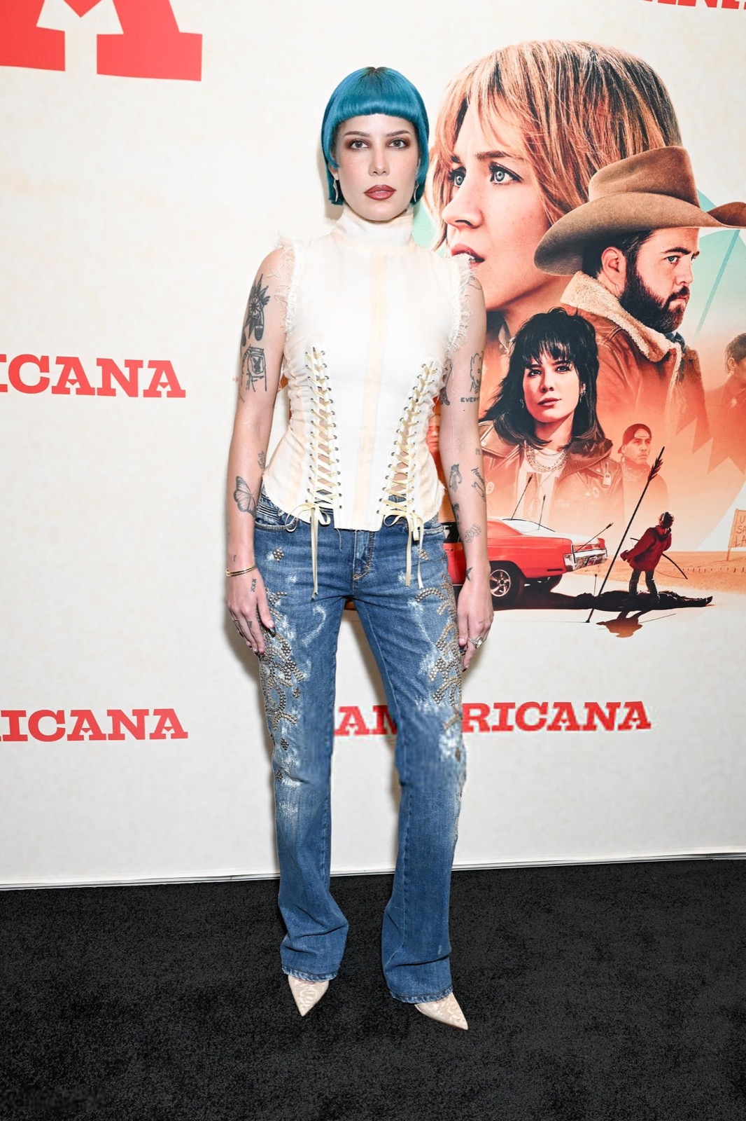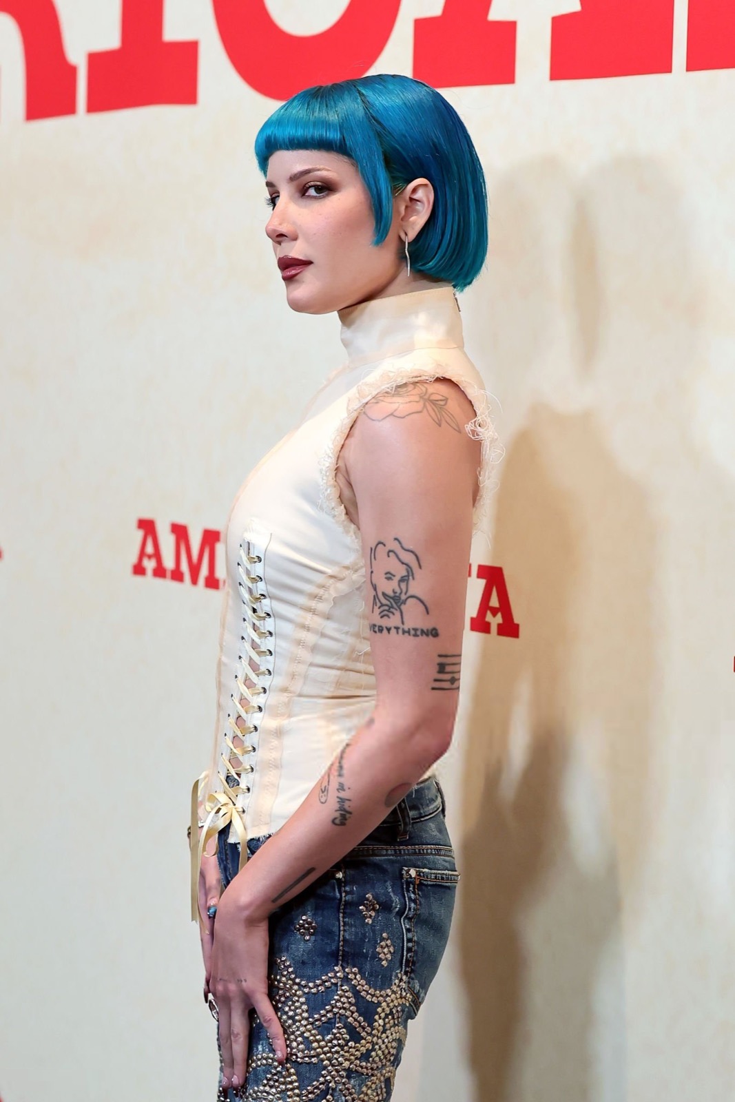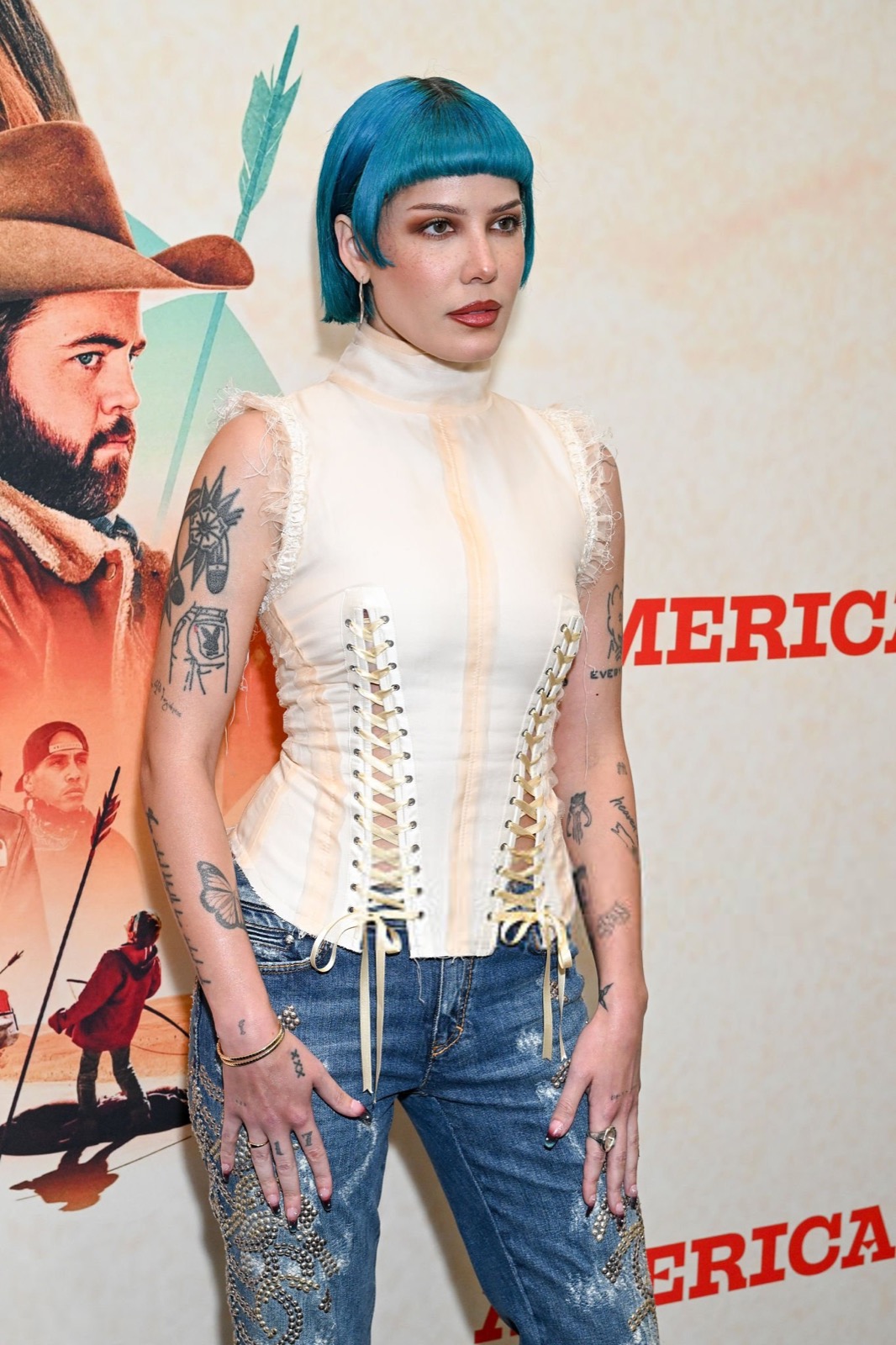 Toujours prête à bousculer les codes, Halsey est arrivée à la projection spéciale d’Americana au Desert 5 Spot de Los Angeles avec un look qui ferait pâlir un nuancier Pantone.