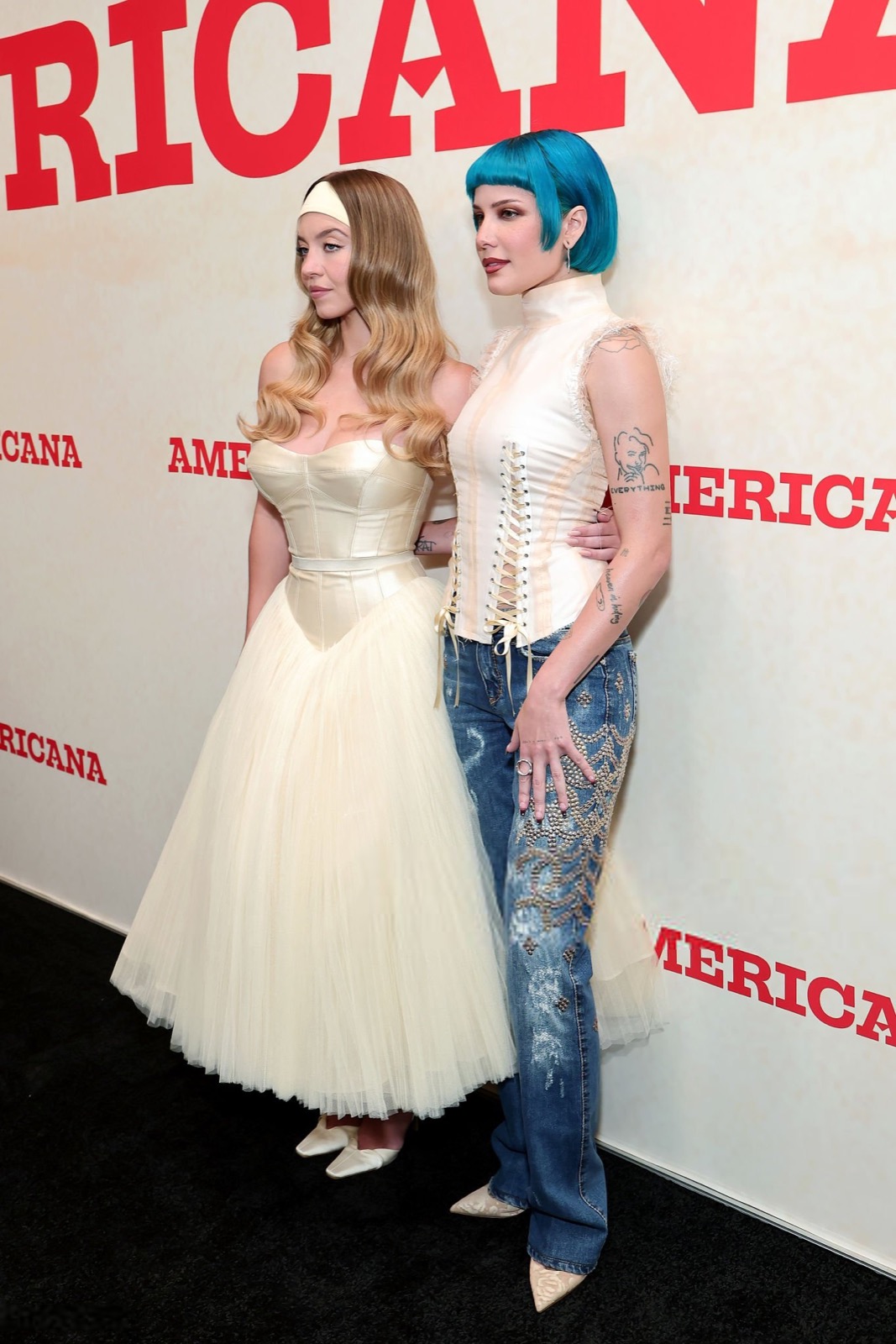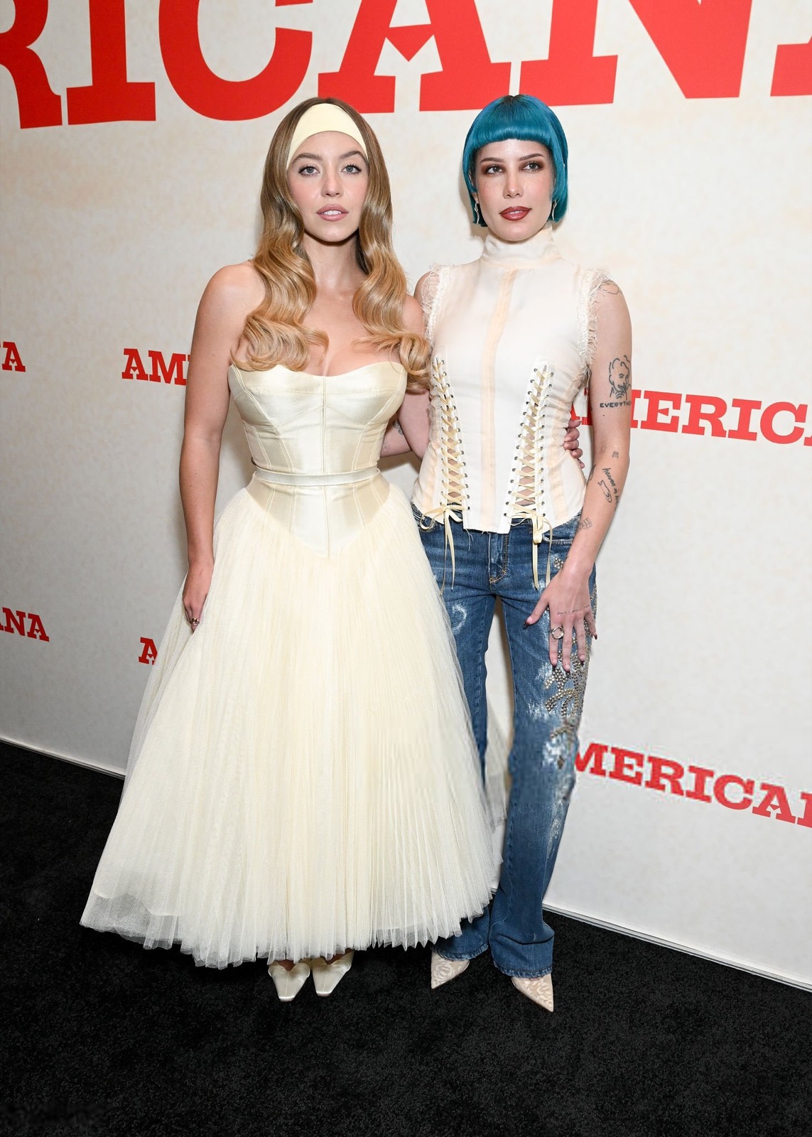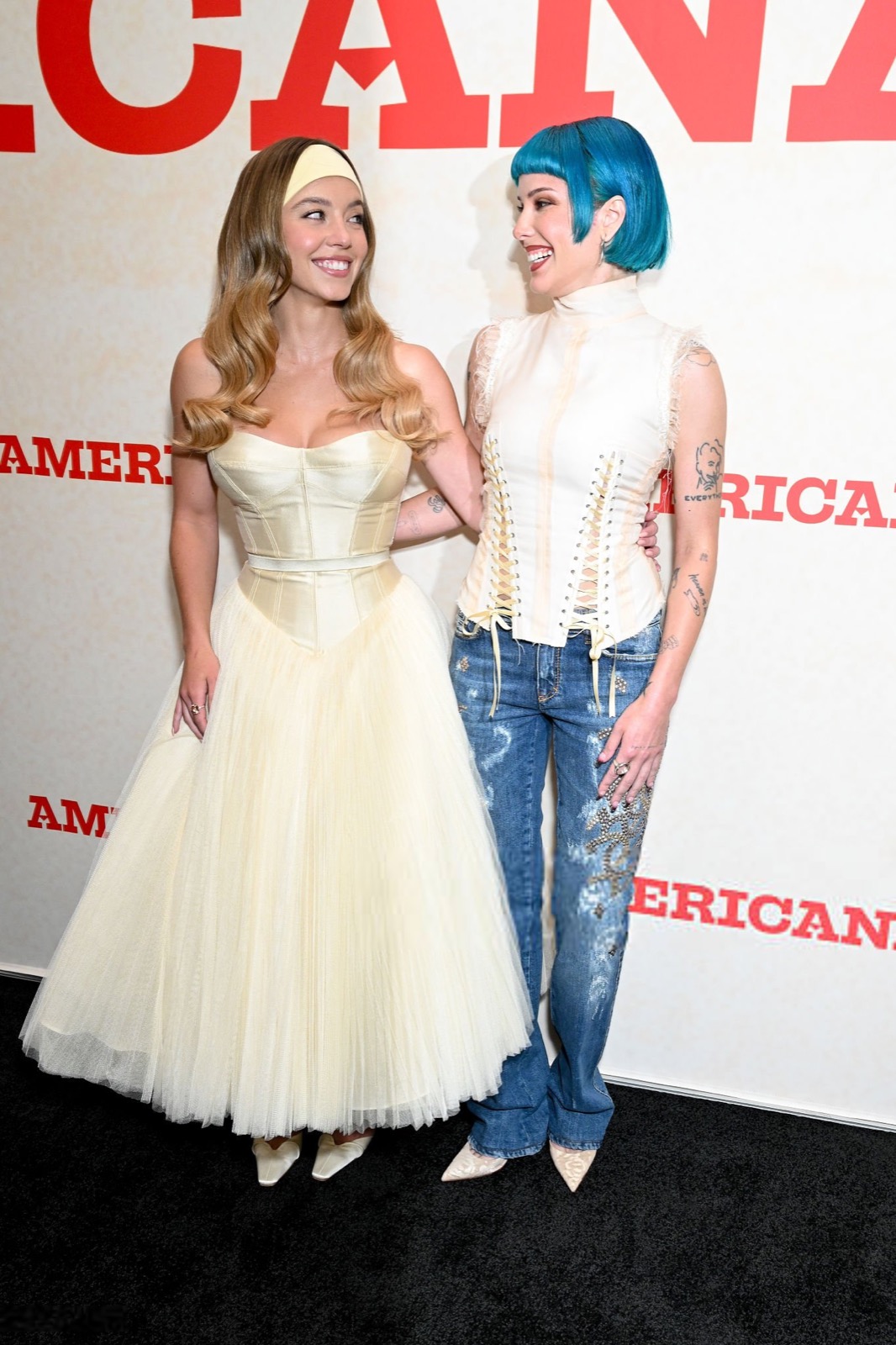 Aux côtés de Sydney Sweeney, l’ensemble prenait des airs de rencontre improbable entre Barbie et une héroïne cyberpunk. Entre pose sérieuse et sourires complices, Halsey semblait osciller entre prêt-à-porter avant-gardiste et cosplay post-apocalyptique.
