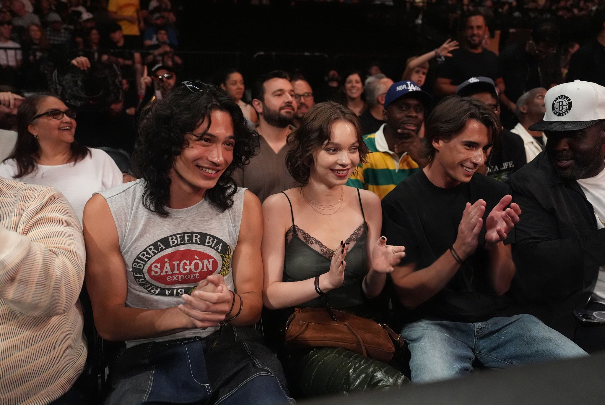 Glamour discret, sourire complice et ambiance électrique : une soirée où le look et l’adrénaline se disputent la vedette… et où la dentelle s’invite même face aux paillettes du ring.