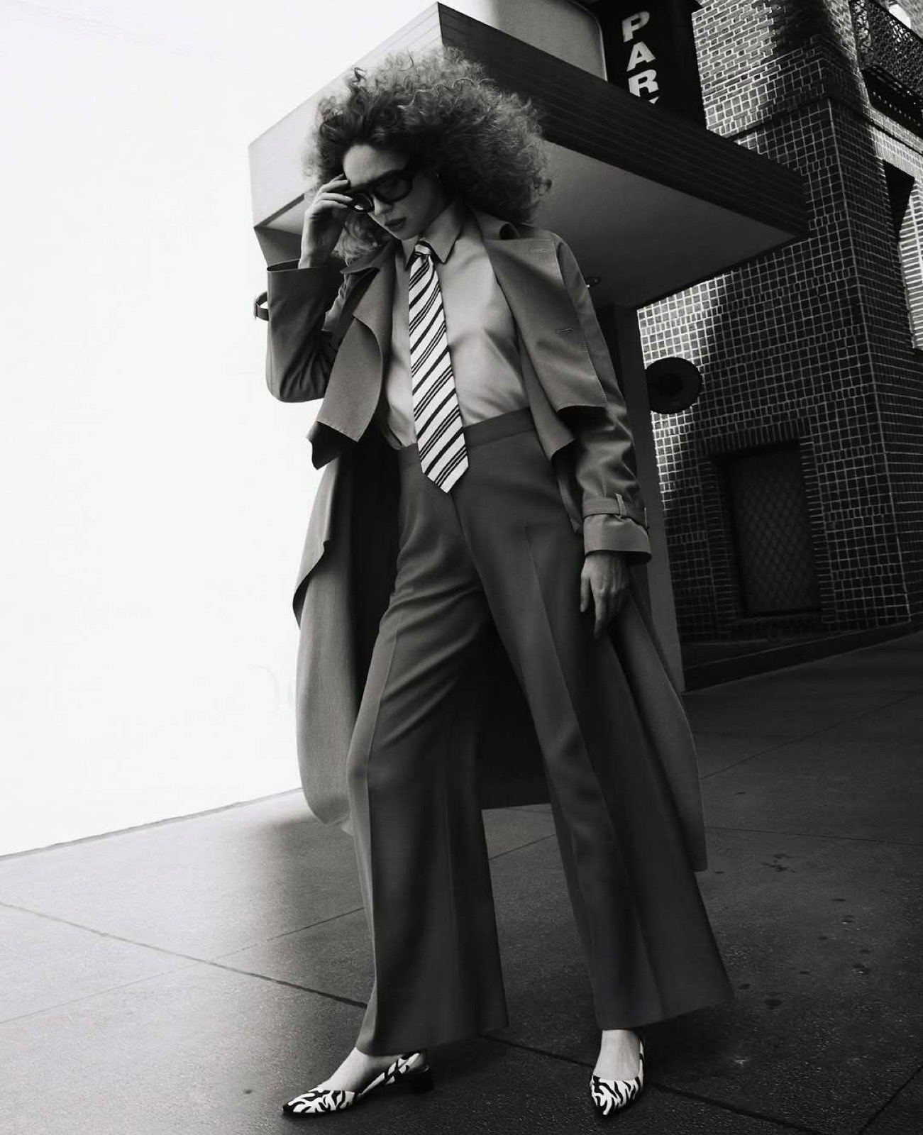 Entre attitude impassible et coiffure tempête savamment contrôlée, Gillan prouve que l’on peut shooter une campagne mode avec l’énergie d’un lundi matin… mais le budget d’un blockbuster hollywoodien.