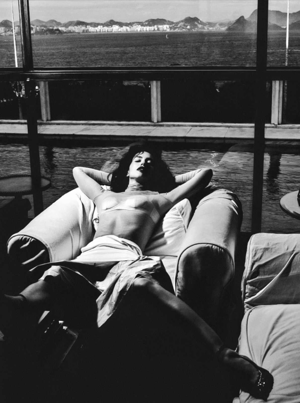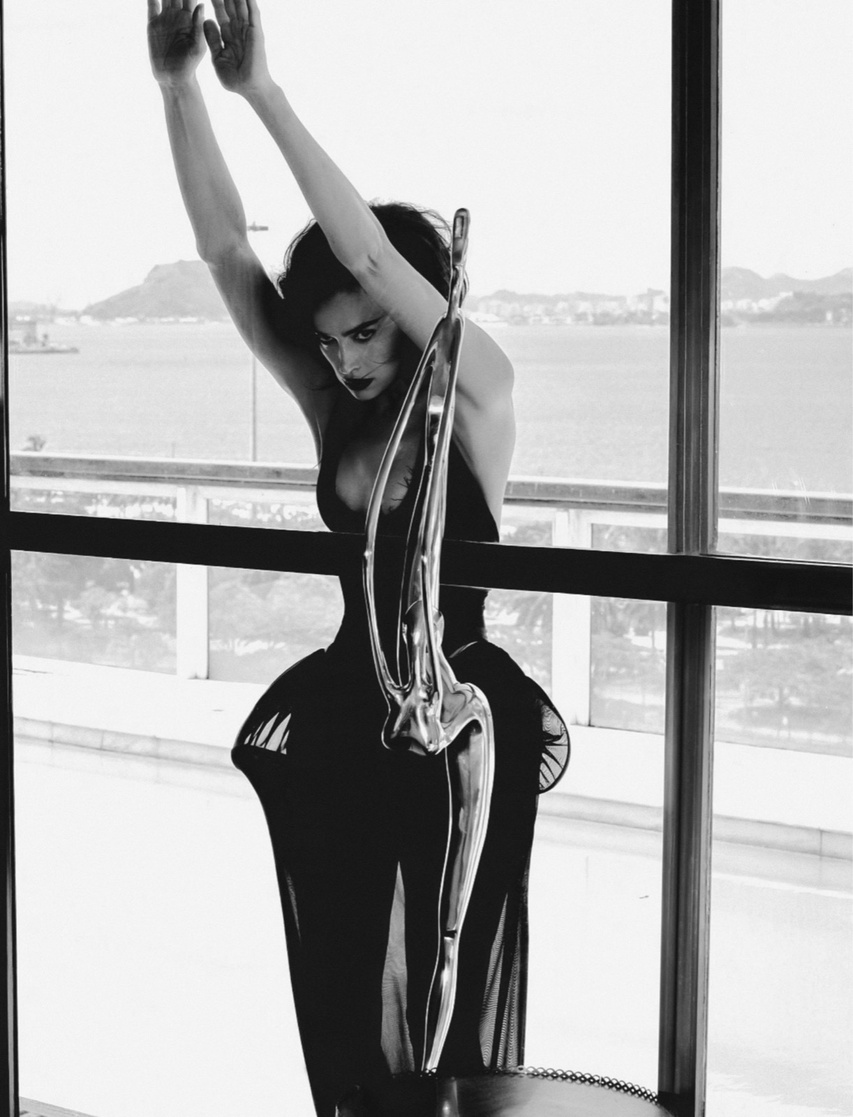 Cheveux savamment ébouriffés, lèvres rouges prêtes à déclarer la guerre au minimalisme, elle fixe l’objectif avec l’intensité d’une héroïne qui sait que chaque souffle est une performance artistique.