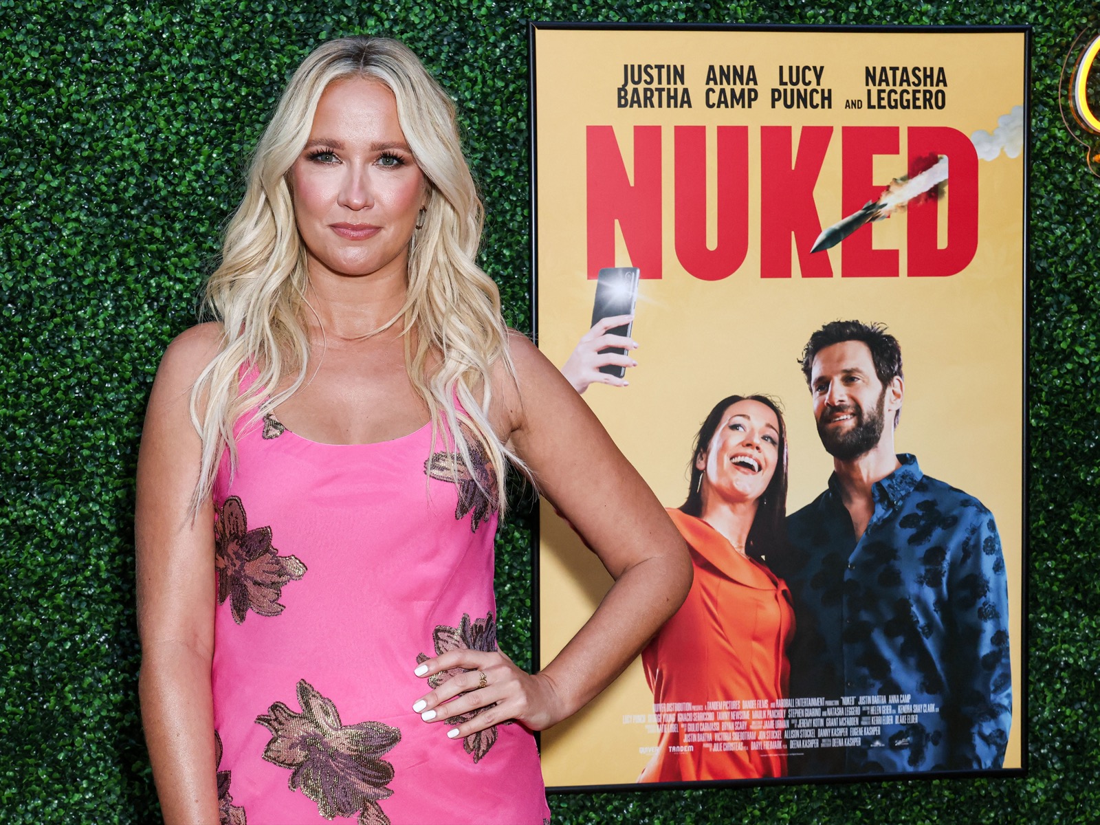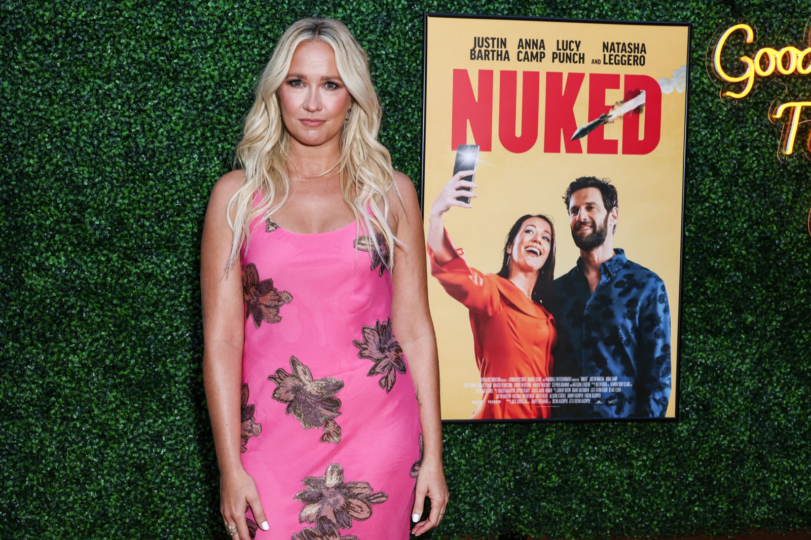 Anna Camp illumine la première de Nuked avec une robe rose fuchsia décorée de fleurs scintillantes, comme si un bouquet entier avait décidé de s’inviter à la fête.