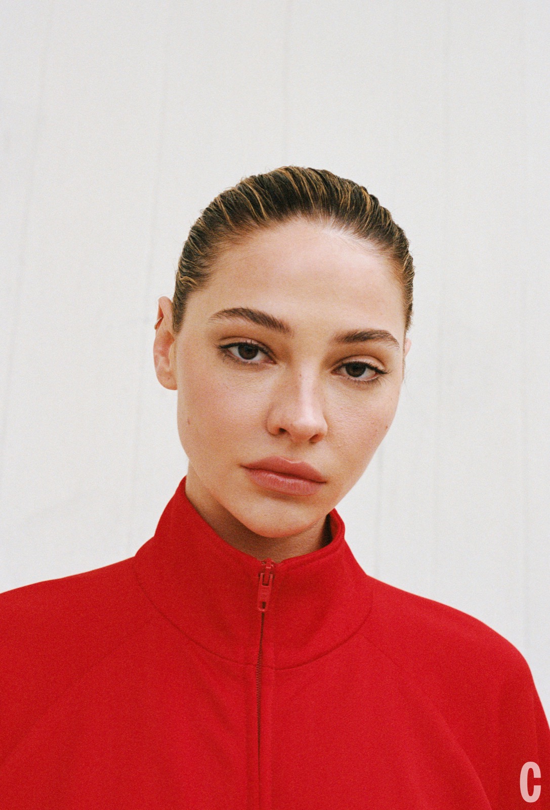 Madelyn Cline en rouge Balenciaga, entre intensité et canapé rouge