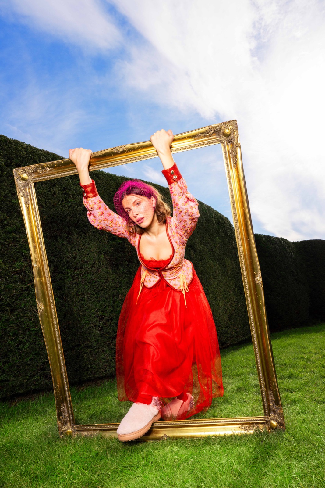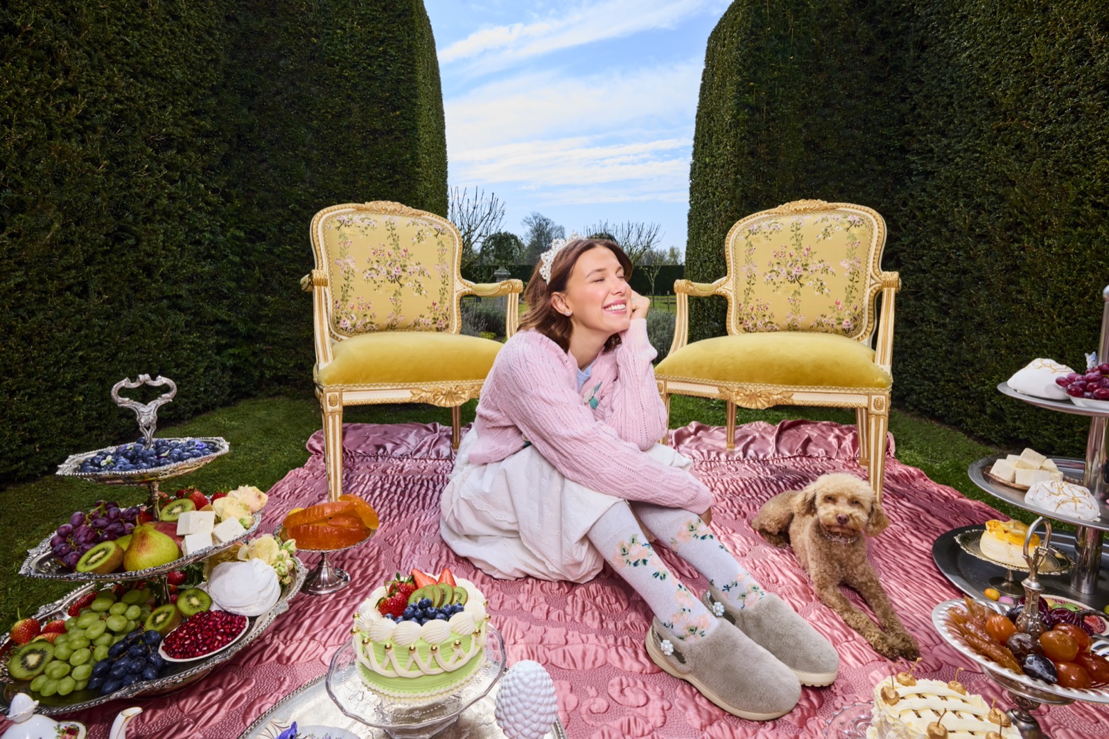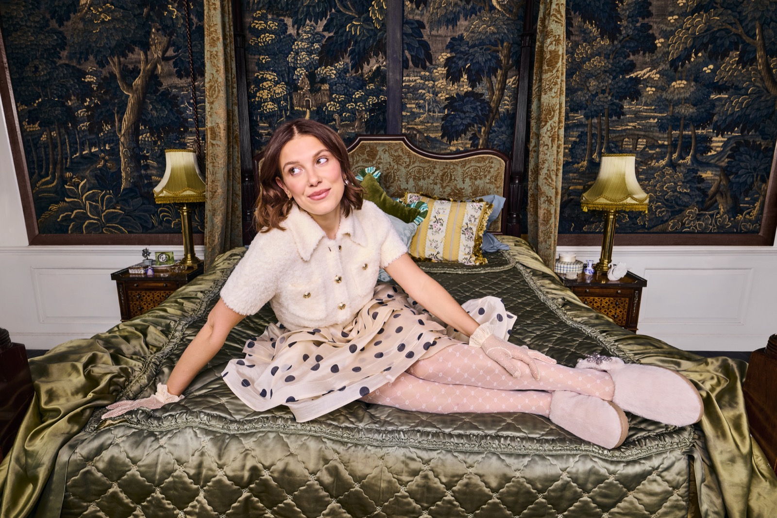Ah, Millie Bobby Brown, entre deux chasses aux monstres dans Stranger Things et ses rôles victoriens, la voilà en égérie cosy, coincée entre un cadre doré et une nappe rose satin digne d’un pique-nique de Barbie aristocrate.