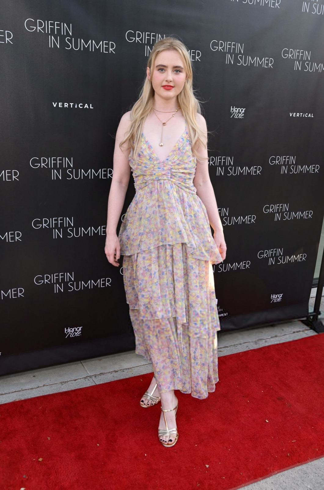 Sous le soleil de Los Angeles, Kathryn Newton est arrivée en robe longue pastel à motifs floraux, volant presque la vedette à l’affiche de Griffin in Summer. Les volants superposés semblaient conçus pour flotter au moindre souffle de vent, comme une pub improvisée pour une eau minérale chic.