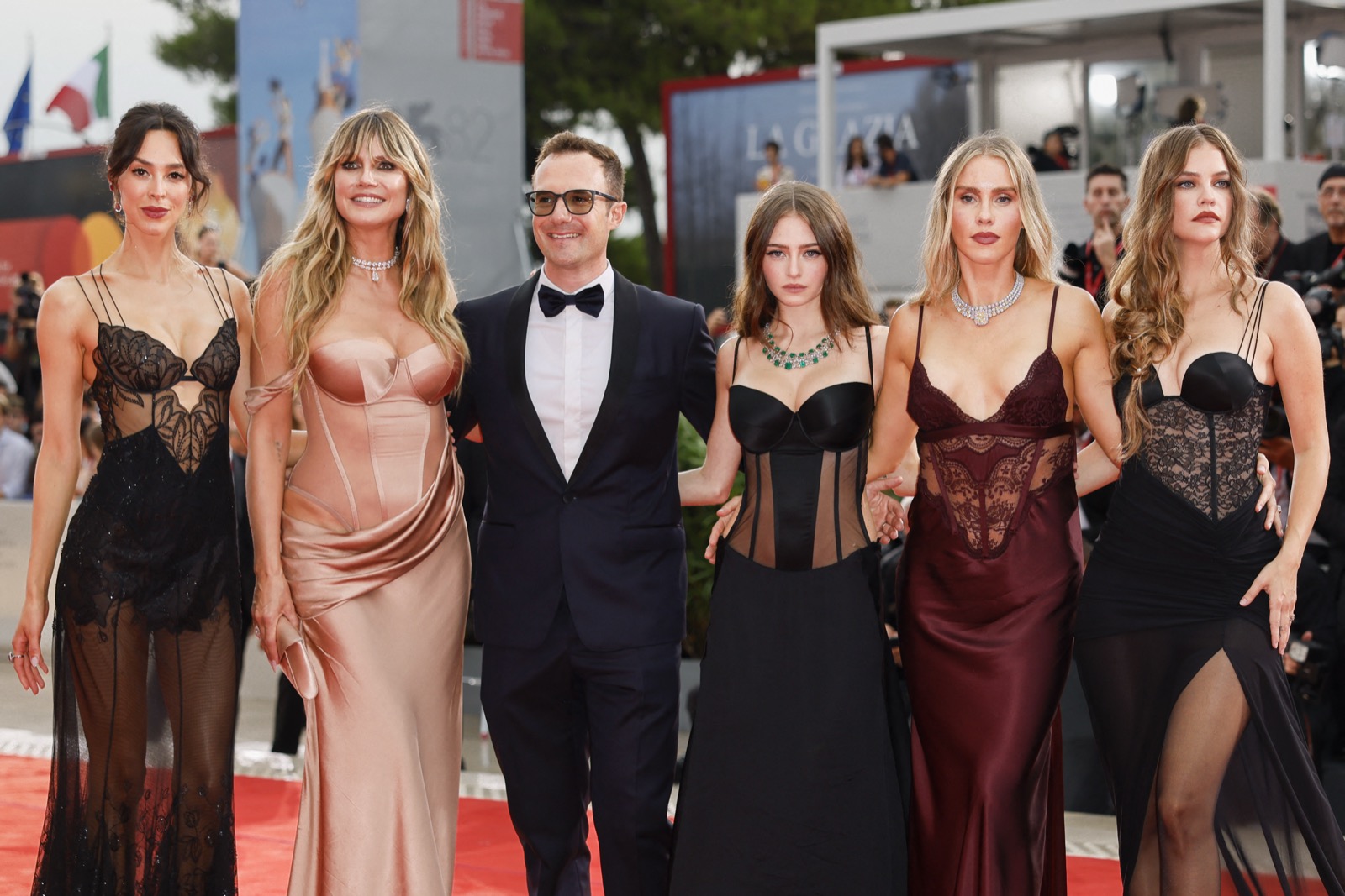Sur le tapis rouge du 82e Festival de Venise, Leni Klum a opté pour une robe noire théâtrale aux panneaux transparents, soulignée par un corset structuré digne d’un défilé de Jean Paul Gaultier. Le contraste avec son collier d’émeraudes surdimensionné donnait à l’ensemble un parfum d’opulence assumée.