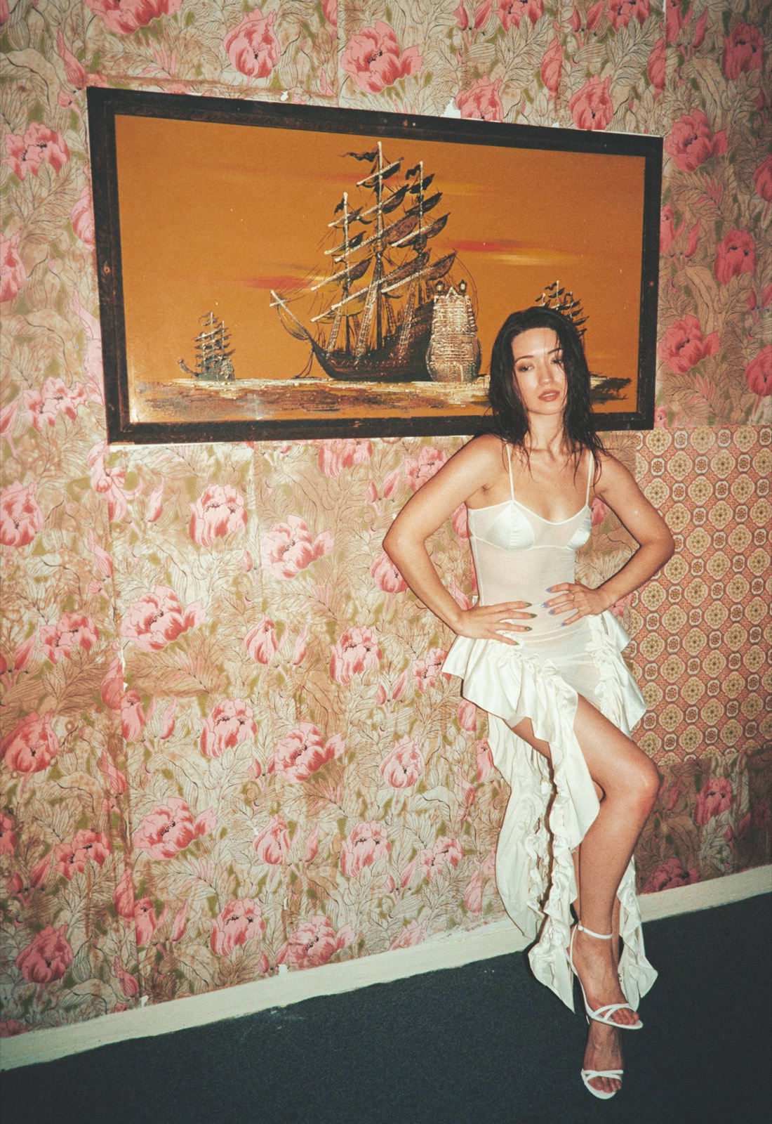 Quand le papier peint criard rencontre la lingerie satinée et que la mode joue à cache-cache avec le bon goût, Reina transforme le kitsch en arme fatale et fait passer la chambre d’hôtel miteuse pour un décor de cinéma indépendant.