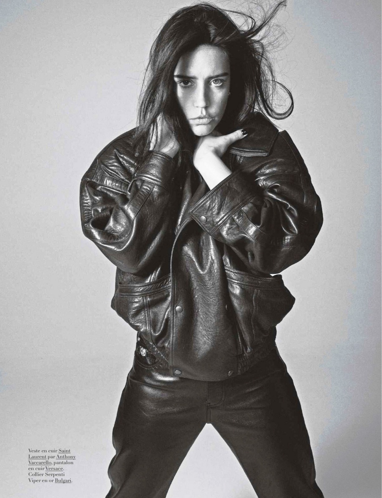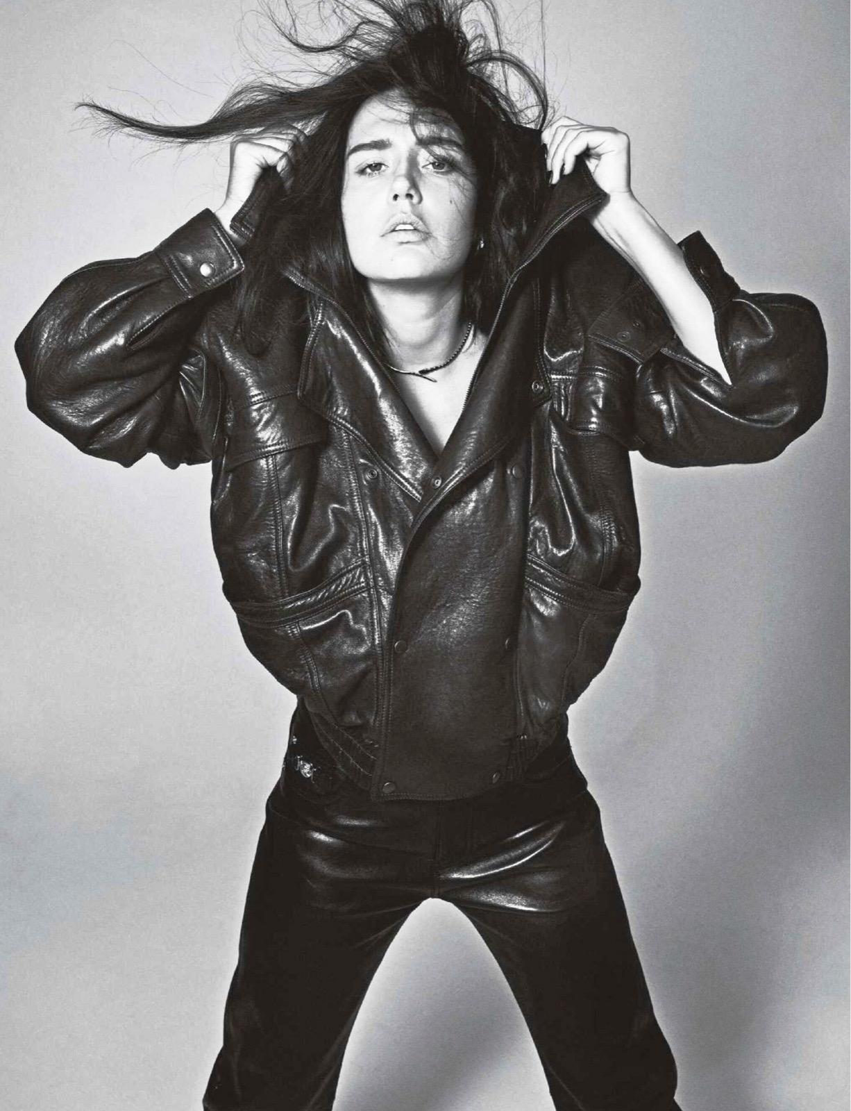 Sous l’œil de David Sims, elle joue la carte du noir et blanc ténébreux, entre chandail informe et bijoux scintillants, comme si le contraste vestimentaire était le nouveau luxe.