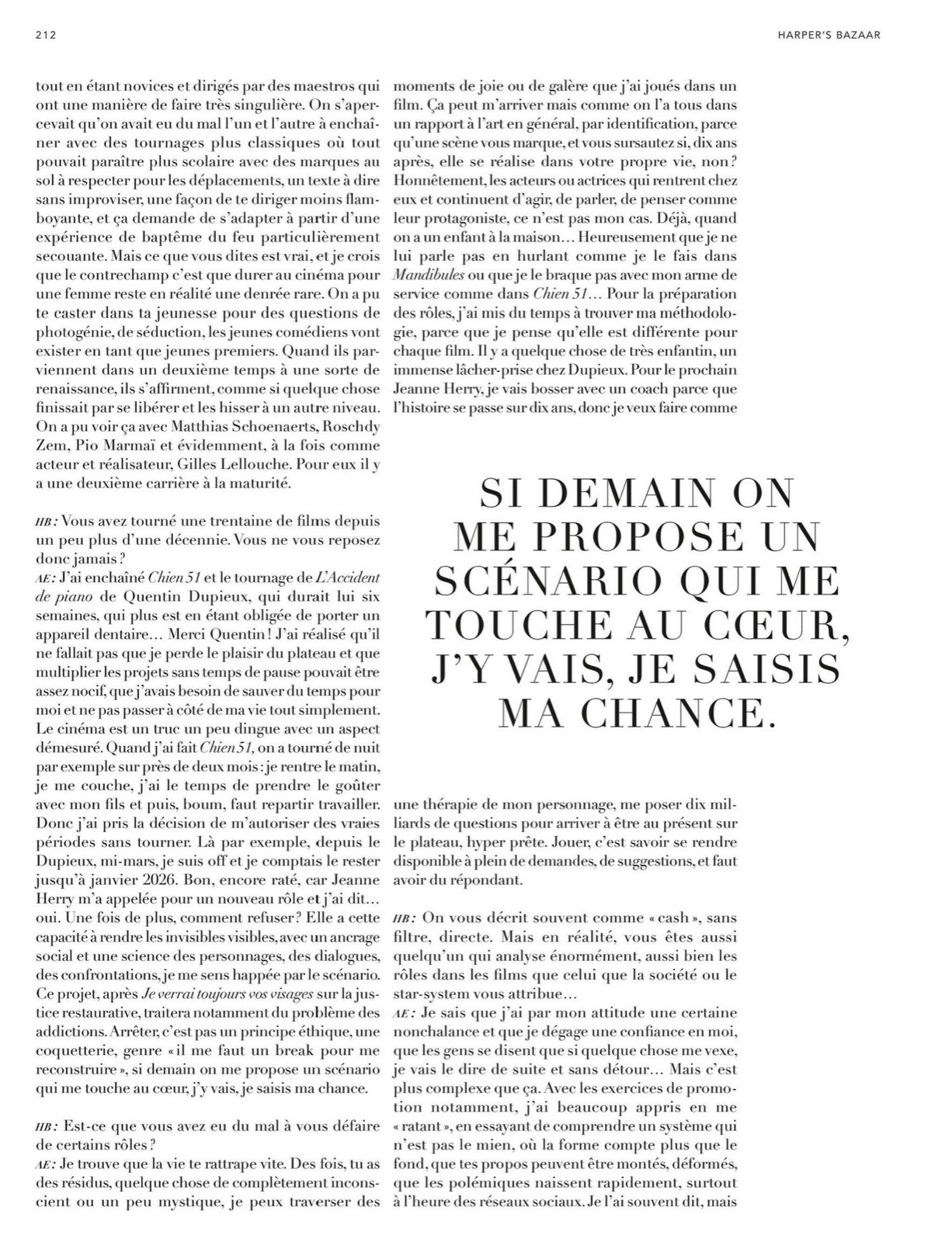 Les cheveux en bataille, l’air absent : on appelle ça l’extase éditoriale. Dans Harper’s Bazaar France, l’actrice se transforme en icône d’attitude plus qu’en modèle de mode.