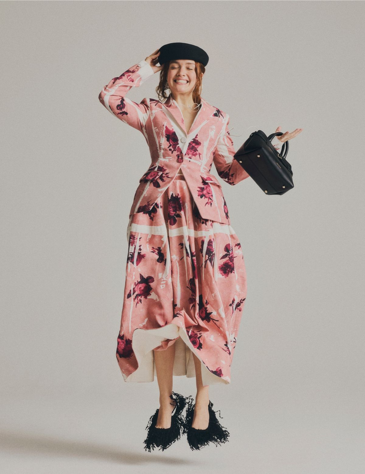 Quand on mélange un bouquet de tournesols, un manteau taille ours et un téléphone vintage, on obtient Olivia Cooke qui transforme un shooting mode en performance dadaïste où la confusion devient carrément couture.