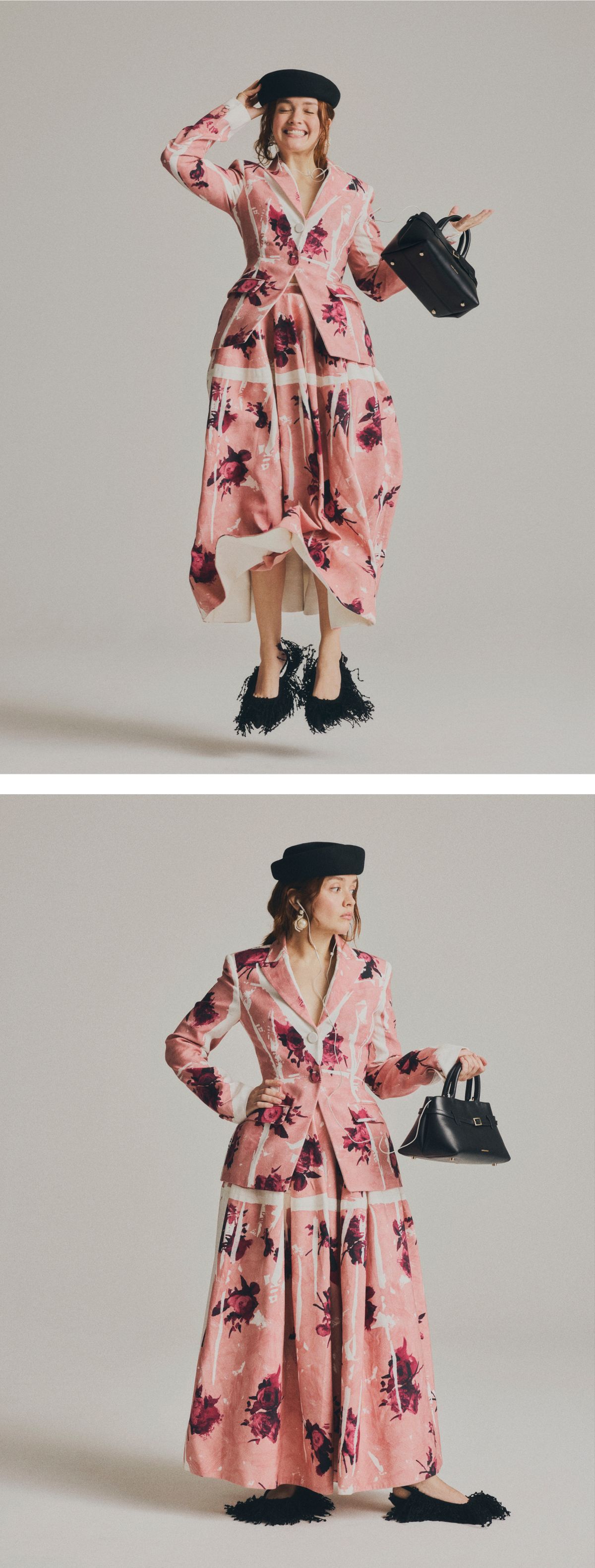 Entre collants jaunes criards et tailleur masculin oversized, Olivia joue les caméléons mode avec un humour pince-sans-rire. Un shooting qui prouve qu’on peut être héroïne de House of the Dragon et reine du second degré éditorial dans le même mouvement.