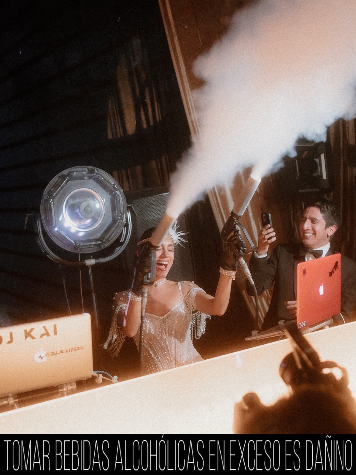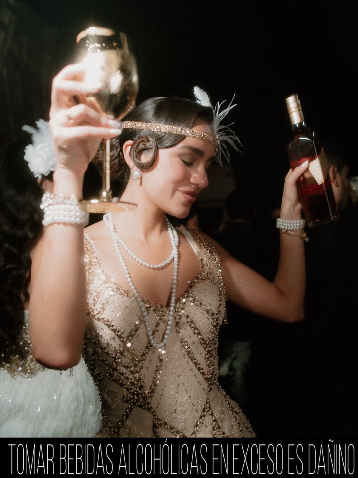 Plumes, perles et champagne : quand on mélange The Great Gatsby avec une soirée au cœur de Lima, il ne reste plus qu’à ajouter une bouteille de whisky doré pour que l’illusion soit parfaite.