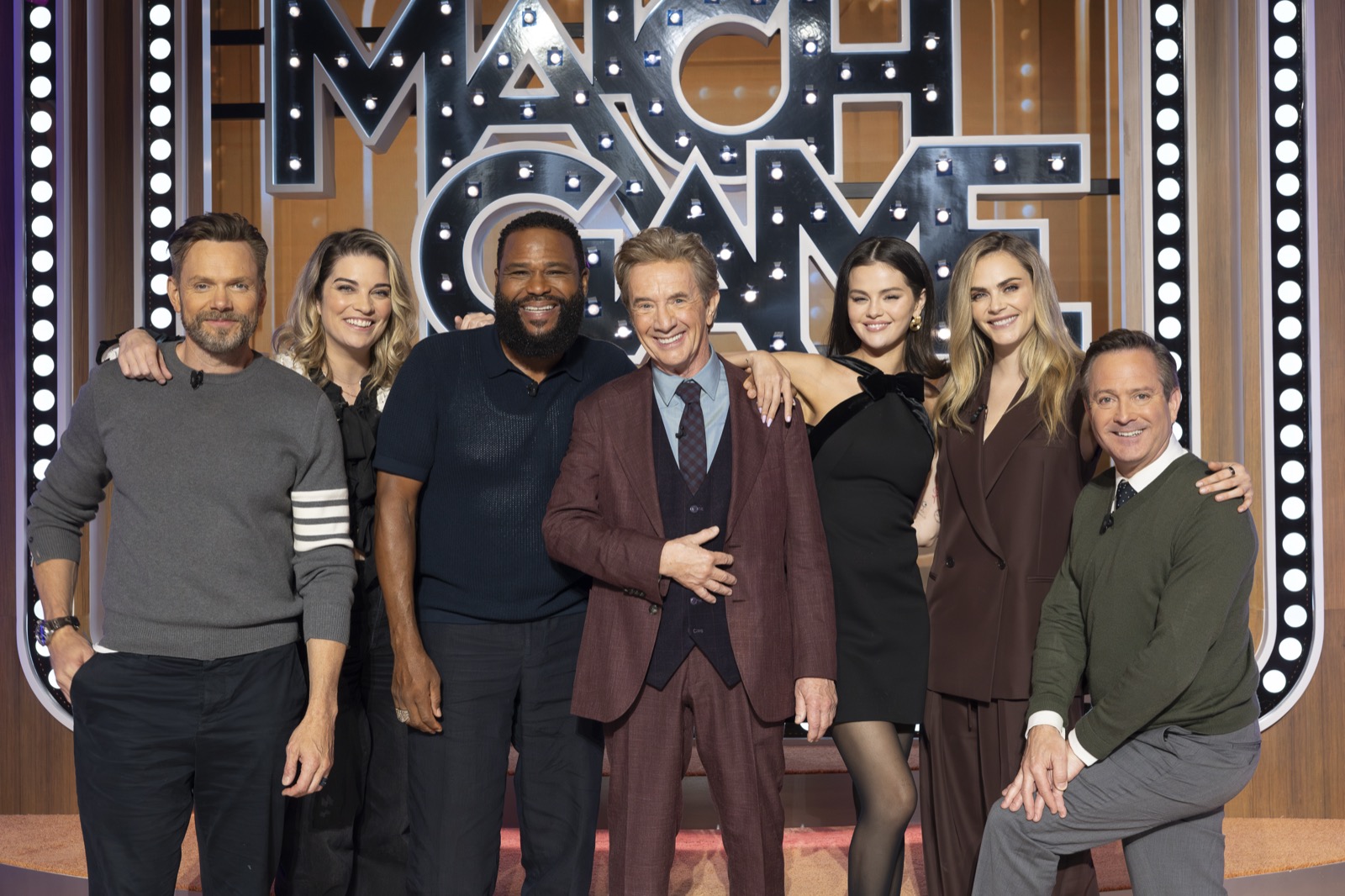 Blottie dans une robe noire asymétrique ornée d’un nœud oversize, Selena Gomez transforme le plateau rétro de Match Game en photocall chic. Les collants noirs, les escarpins coordonnés, et le brushing lisse impeccablement orchestré confirment qu’elle connaît le code couleur du jeu.