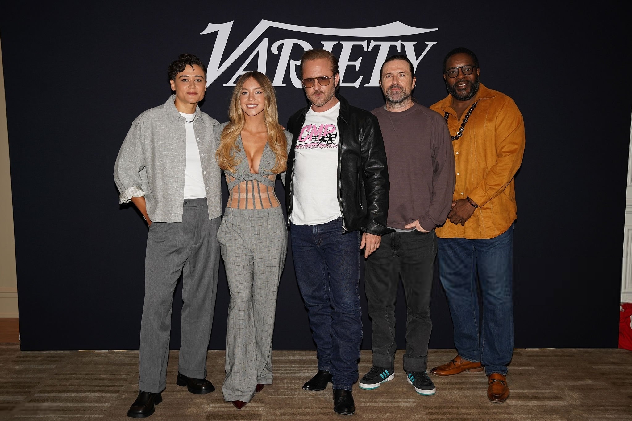 Le TIFF a beau être un festival de cinéma, certains visent clairement une statuette en latex invisible. Dans ce photocall sobre, Sydney impose le contraste : murs vides, moquette terne, mais tenue spectaculaire façon scénario improbable.
