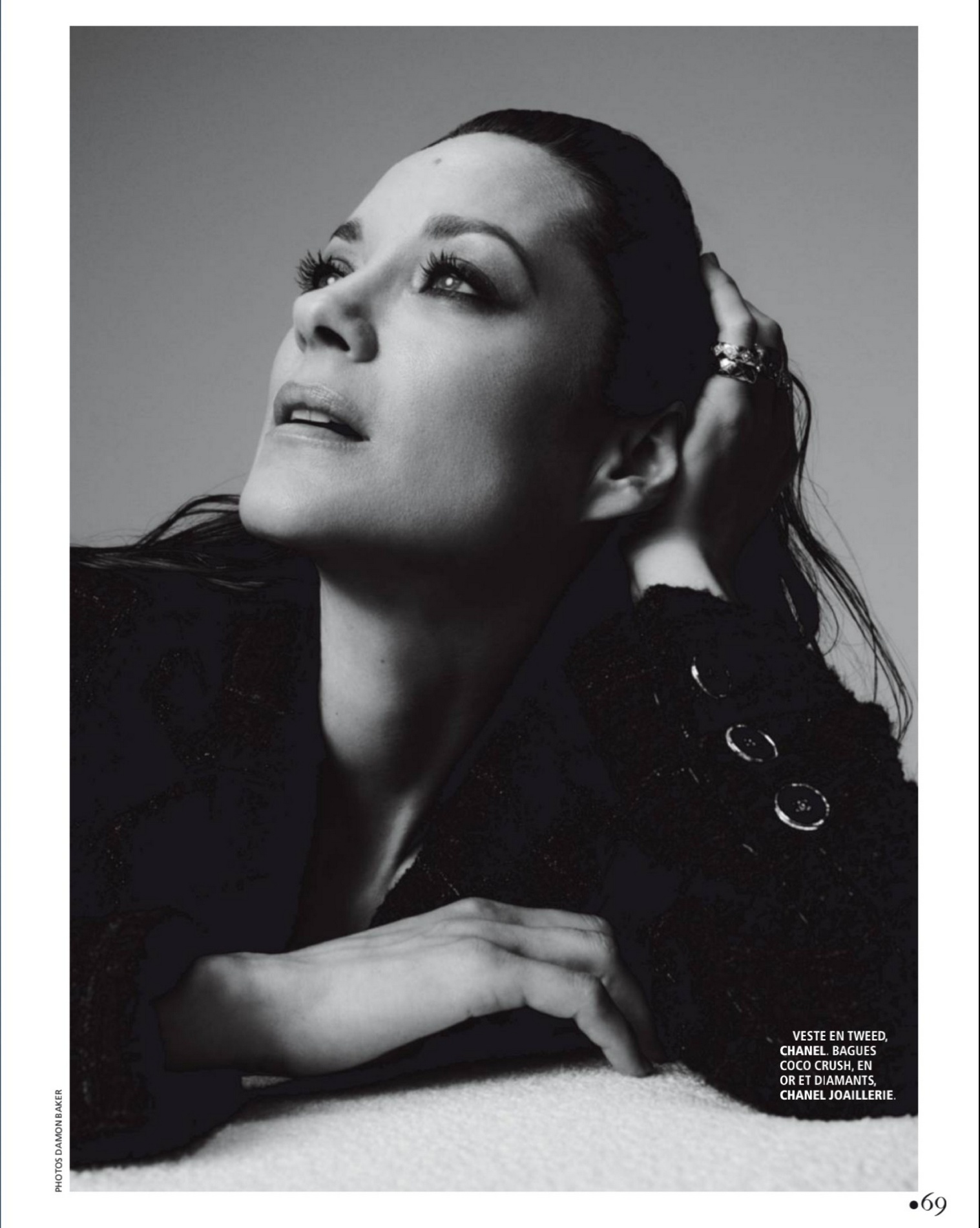 Entre regard habité, frange mouillée et veste Chanel trop grande, Marion Cotillard explore les tréfonds de l’âme humaine comme s’il s’agissait d’un shooting post-apocalyptique en noir, blanc, tweed et verni.