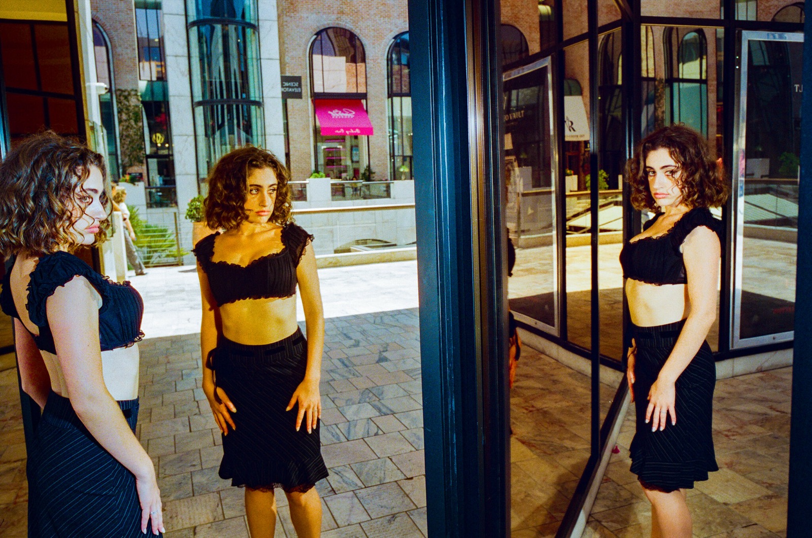 Dans un escalier jaune fluo au charme douteux, Rachel Sennott ouvre une cape en fausse fourrure comme une star de l’opéra en plein interlude dramatique. Le tout, en soutien-gorge et jupe noire à rayures, histoire de rappeler qu'on est entre glam et farce postmoderne.